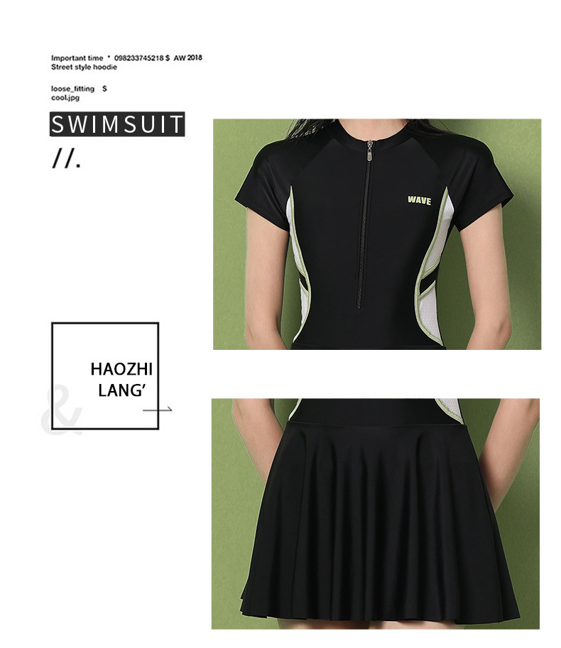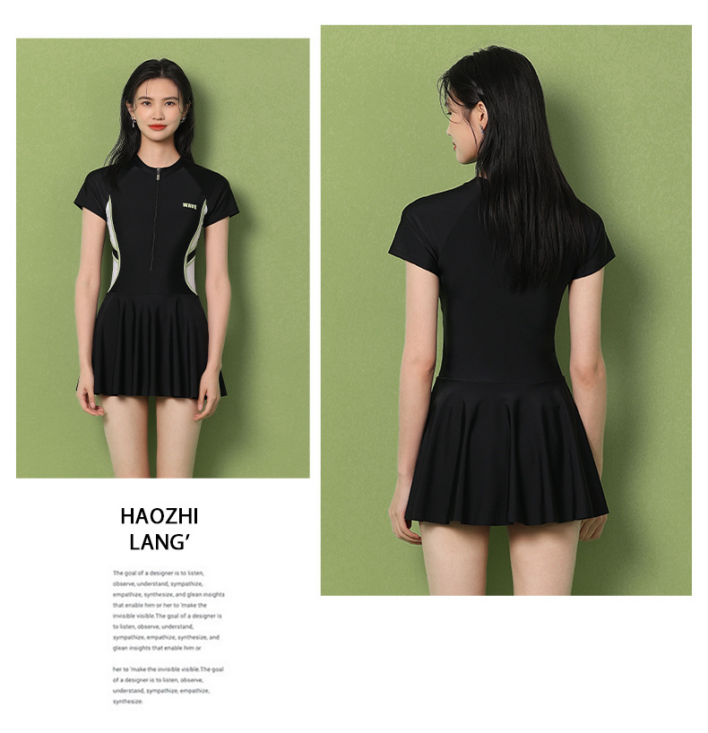 【Hao Zhi Lang】여성용 스포츠 원피스 수영복 여름 수영복 스커트형 수영복 도매 반팔 대형 사이즈 원피스 속건 수영복