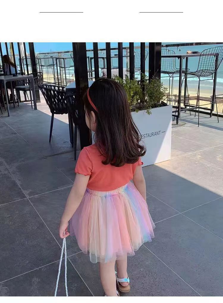 새로운 한국 스타일 여아 아이스 실크 반팔 티셔츠 유아 여름복 아동용 모든 경기 스트라이프 웨스턴 스타일 우드 이어 탑스토어 가기