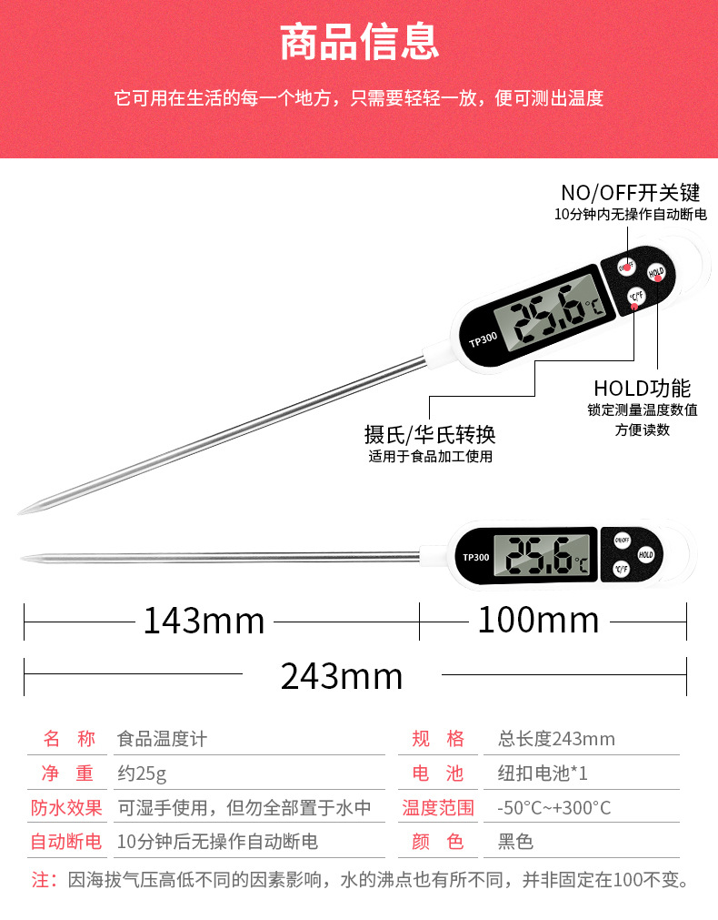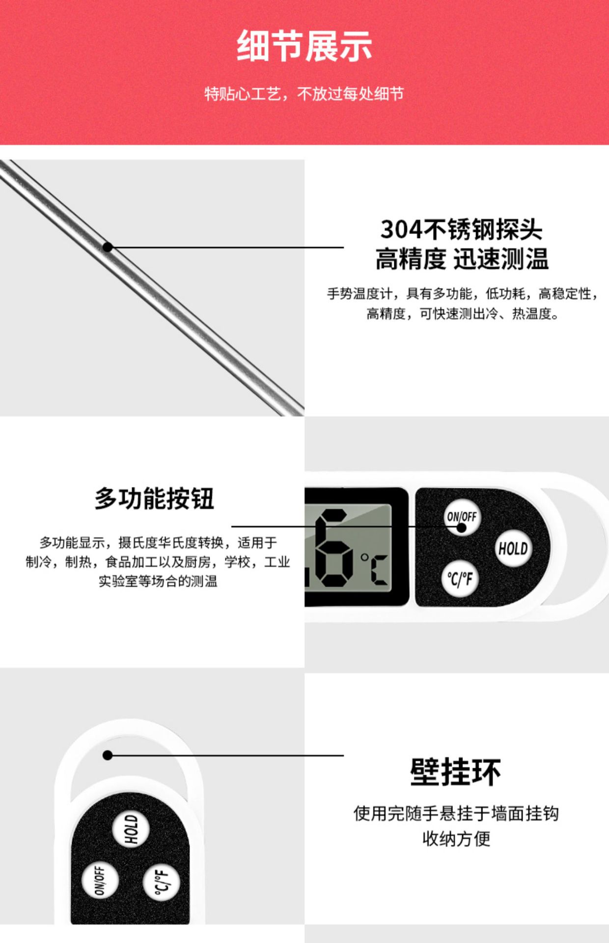 국경 간 음식 온도 온도계 베이킹 주방 오일 온도 미터 수온 미터 우유 온도 빵 전자 프로브