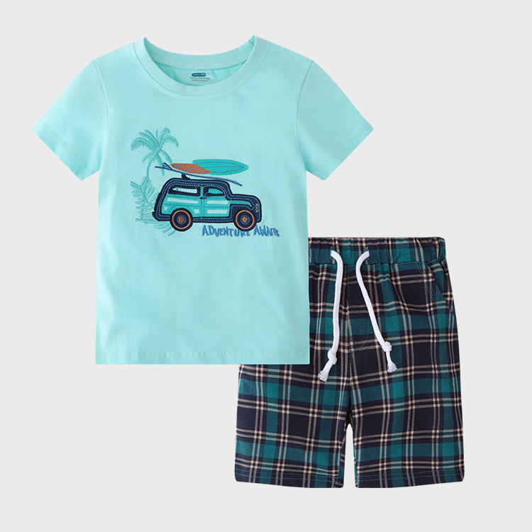 남아용 반팔 티셔츠 세트 2025 신상 아동 티셔츠 패션 자동차 자수 투피스 여름옷 트렌디 아동복스토어 가기