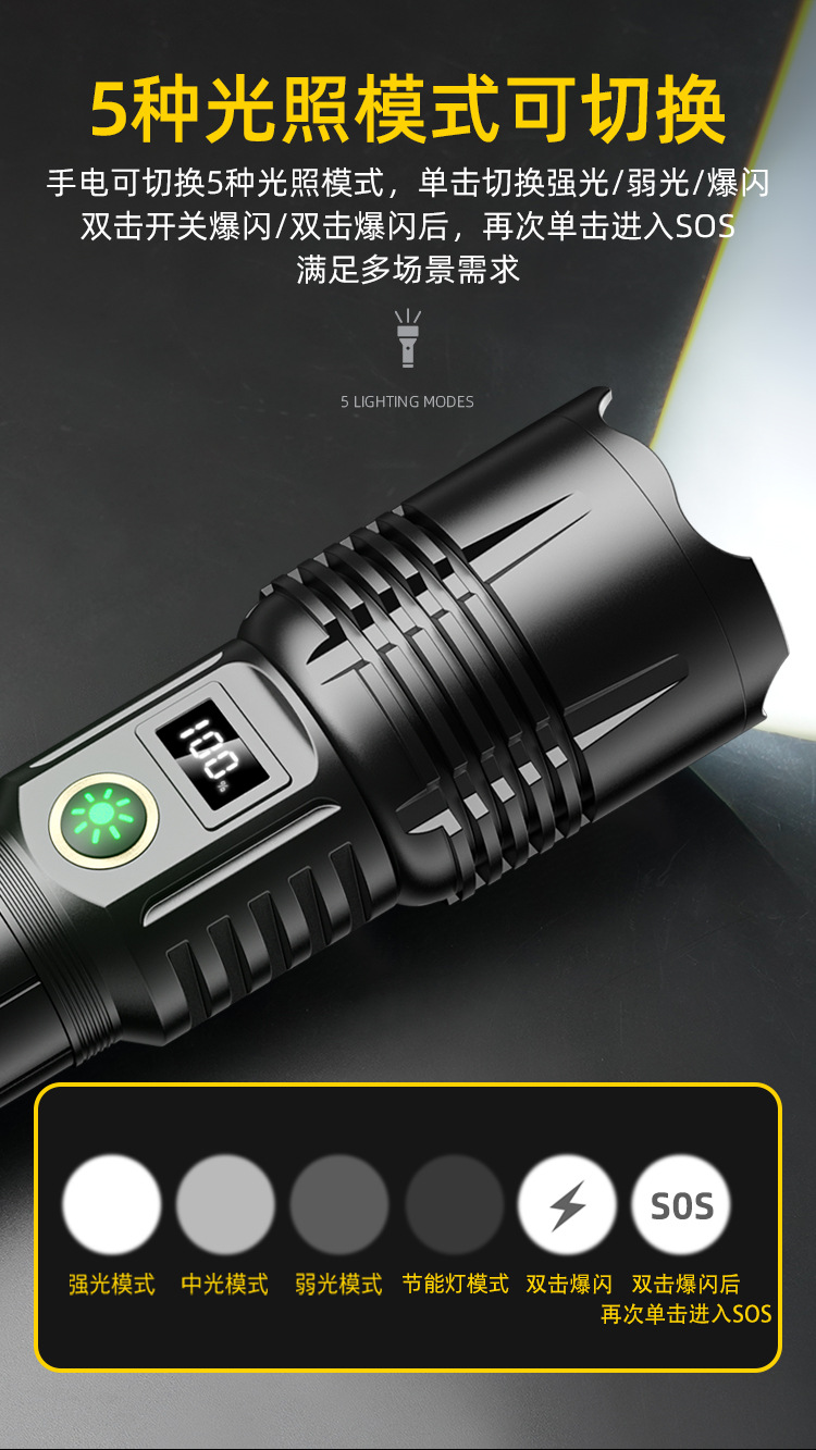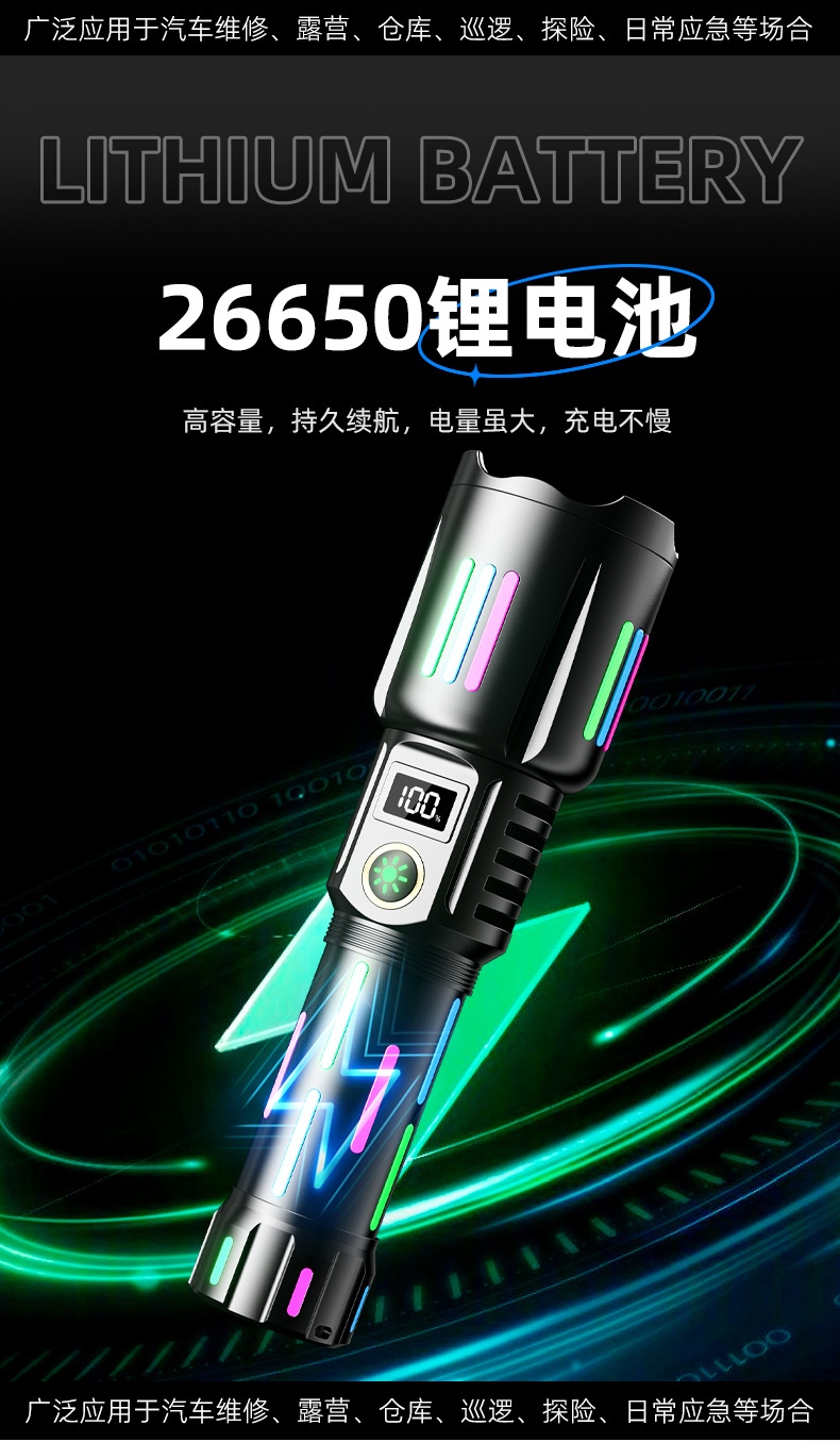 • W511A 백색 레이저 손전등 유형-C 데이터 라인 26650 배터리 컬러 박스