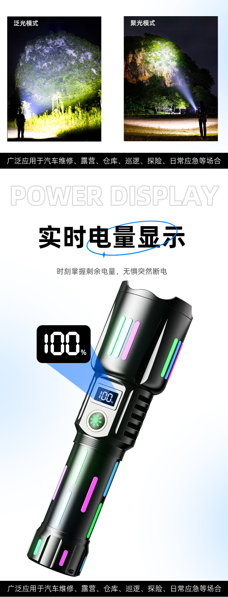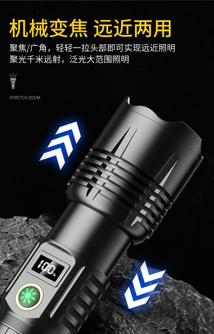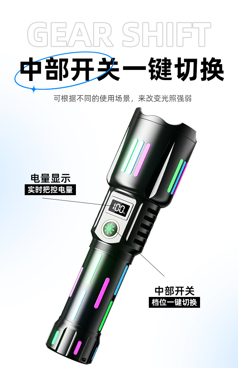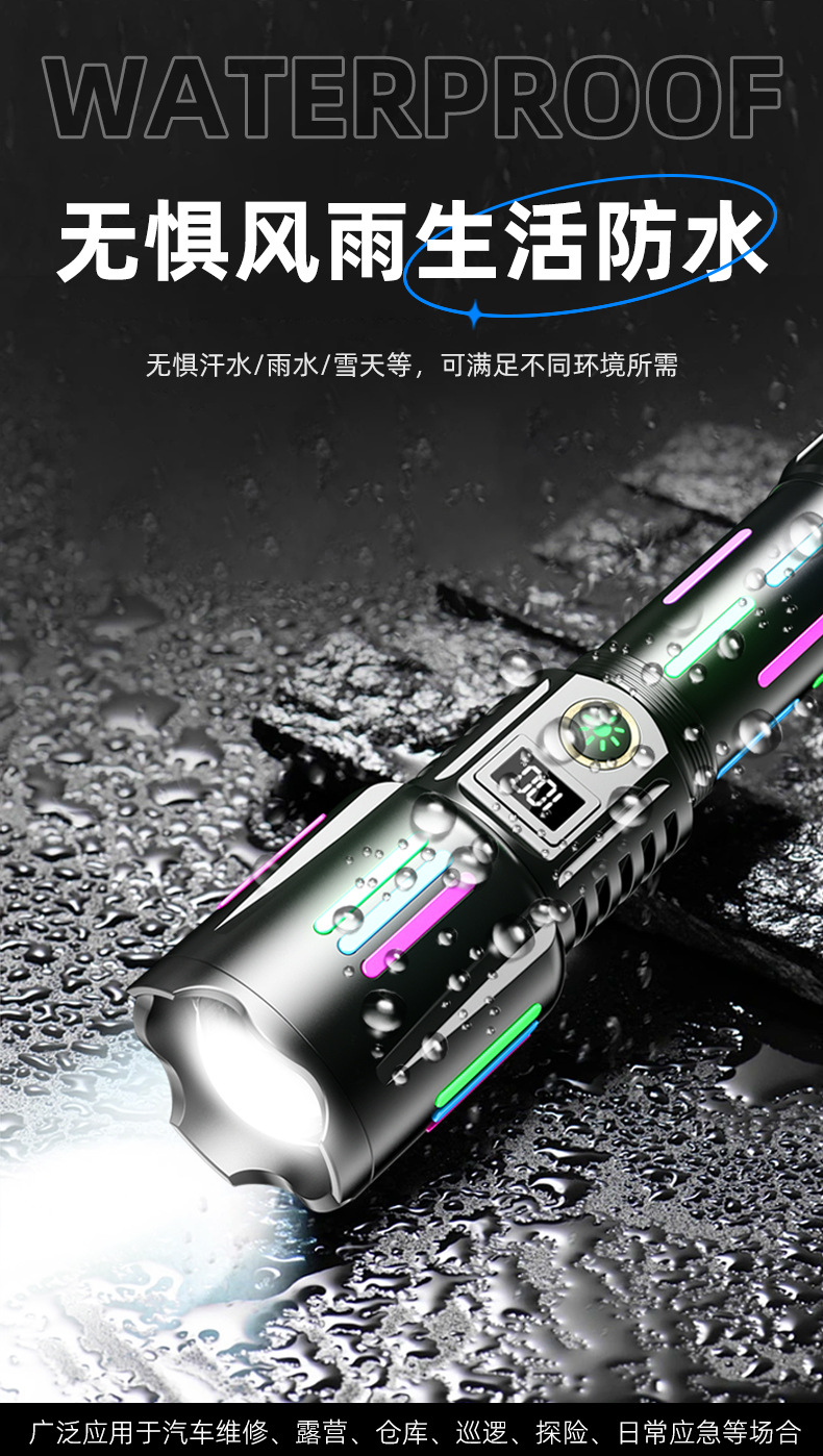 국경 간 흰색 레이저 손전등 유형-C 충전 야외 줌 디지털 형광 스트립 LED 손전등스토어 가기