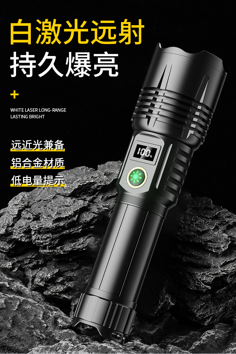 • W515 흰색 레이저 손전등 USB 케이블 26650 리튬 배터리