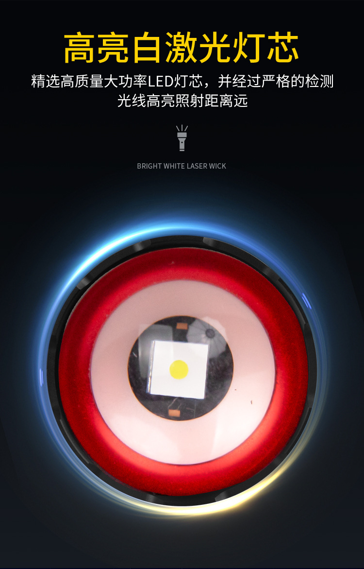 • W509 흰색 레이저 손전등 USB 케이블 26650 리튬 배터리