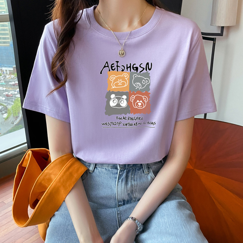 여성용 오른쪽 어깨 순면 반팔 티셔츠 여름 얇은 이너웨어 2025 새로운 루즈 화이트 티셔츠 슬리밍 탑 트렌디스토어 가기