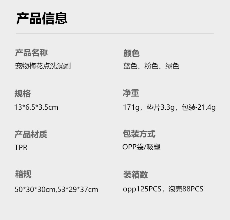 애완동물 매화 포인트 목욕 브러쉬 마사지 빗 TPR 고무 개 고양이 개 청소 미용 도구 공장