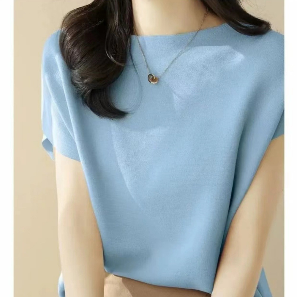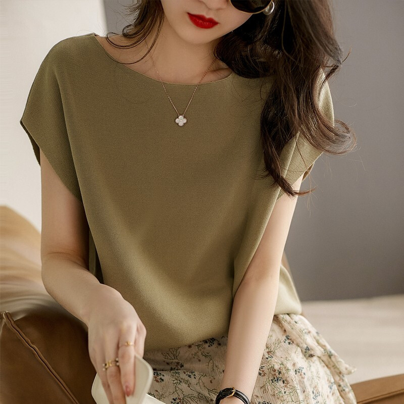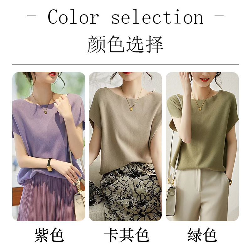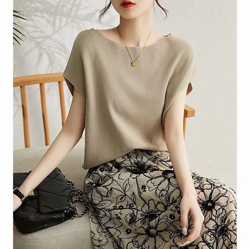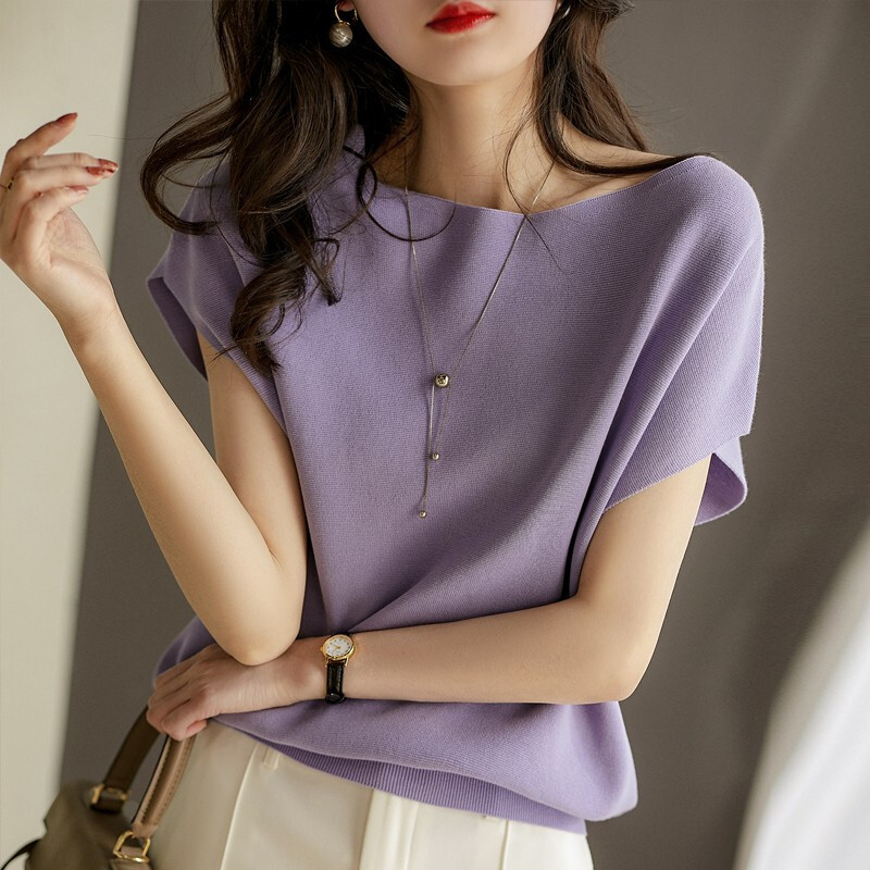 2024년 여름 신상 무지 리오셀 텐셀 니트 여성 티셔츠 루즈핏 오프숄더 박쥐소매 여성 상의스토어 가기