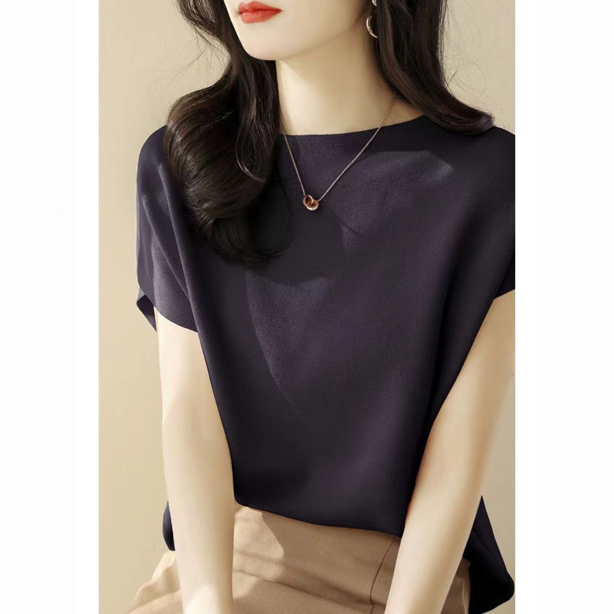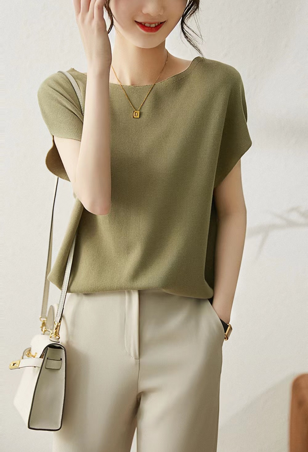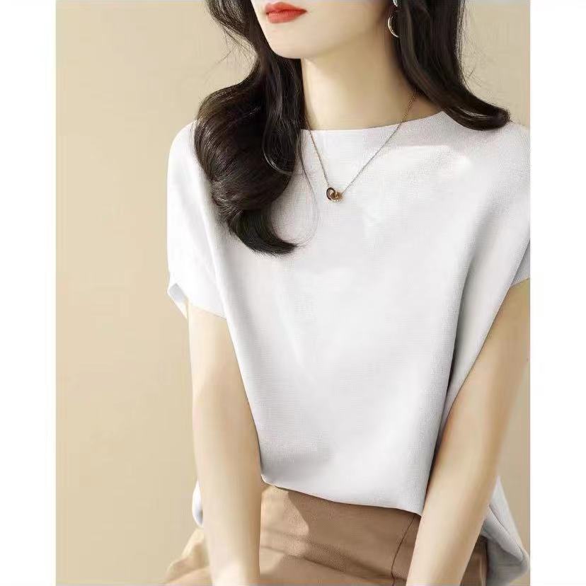 2024년 여름 신상 무지 리오셀 텐셀 니트 여성 티셔츠 루즈핏 오프숄더 박쥐소매 여성 상의스토어 가기