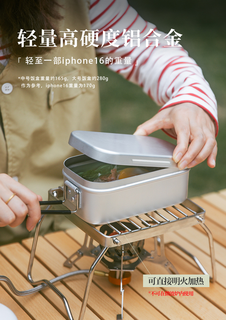 야외 알루미늄 도시락 캠핑 요리 아티팩트 구식 알루미늄 합금 히터 식기 세트 피크닉을위한 휴대용스토어 가기
