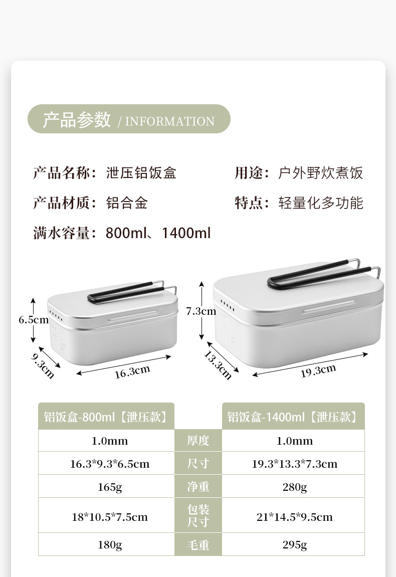 • 800ml 압력 완화 알루미늄 도시락
