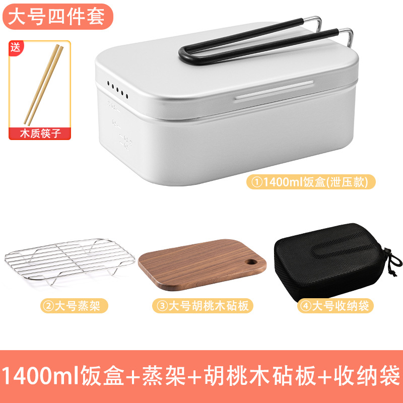 • 1400ml 도시락통 + 찜대 + 스토브 + 호두도마 + 접이식 칼 + 가방 (나무젓가락 포함)