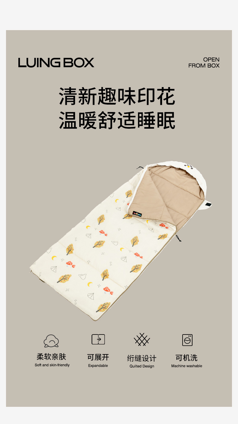 Luingbox 캠핑 박스 야외 어린이 침낭 어린이 겨울 두꺼운 방한 이불 이중 목적 방한 사무실스토어 가기