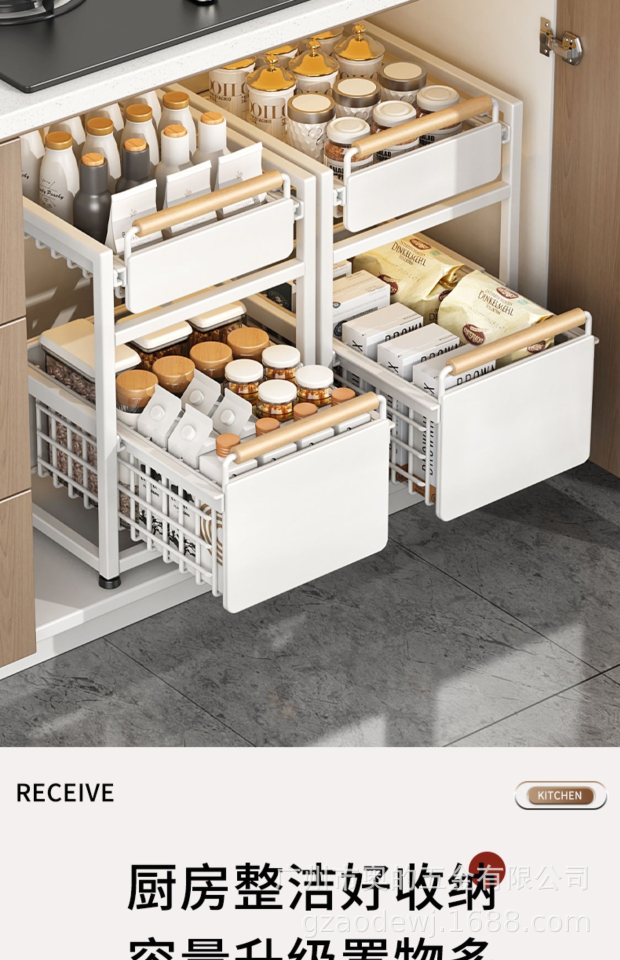캐비닛 바구니 주방 캐비닛 레이어드 조미료 보관 랙 싱크대 보관 랙 아래 자체 제작 서랍형 깊은 캐비닛