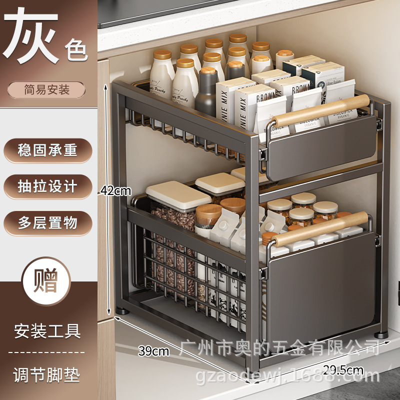 캐비닛 바구니 주방 캐비닛 레이어드 조미료 보관 랙 싱크대 보관 랙 아래 자체 제작 서랍형 깊은 캐비닛스토어 가기
