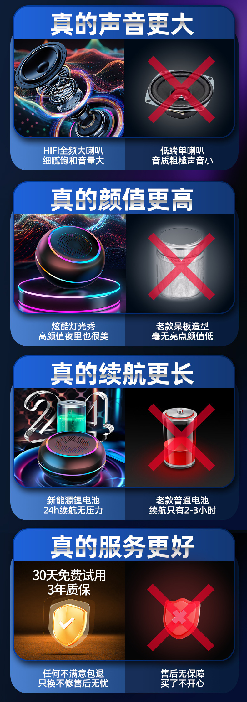 • 블랙 표준 버전: 작은 배터리 + 일반 음질
