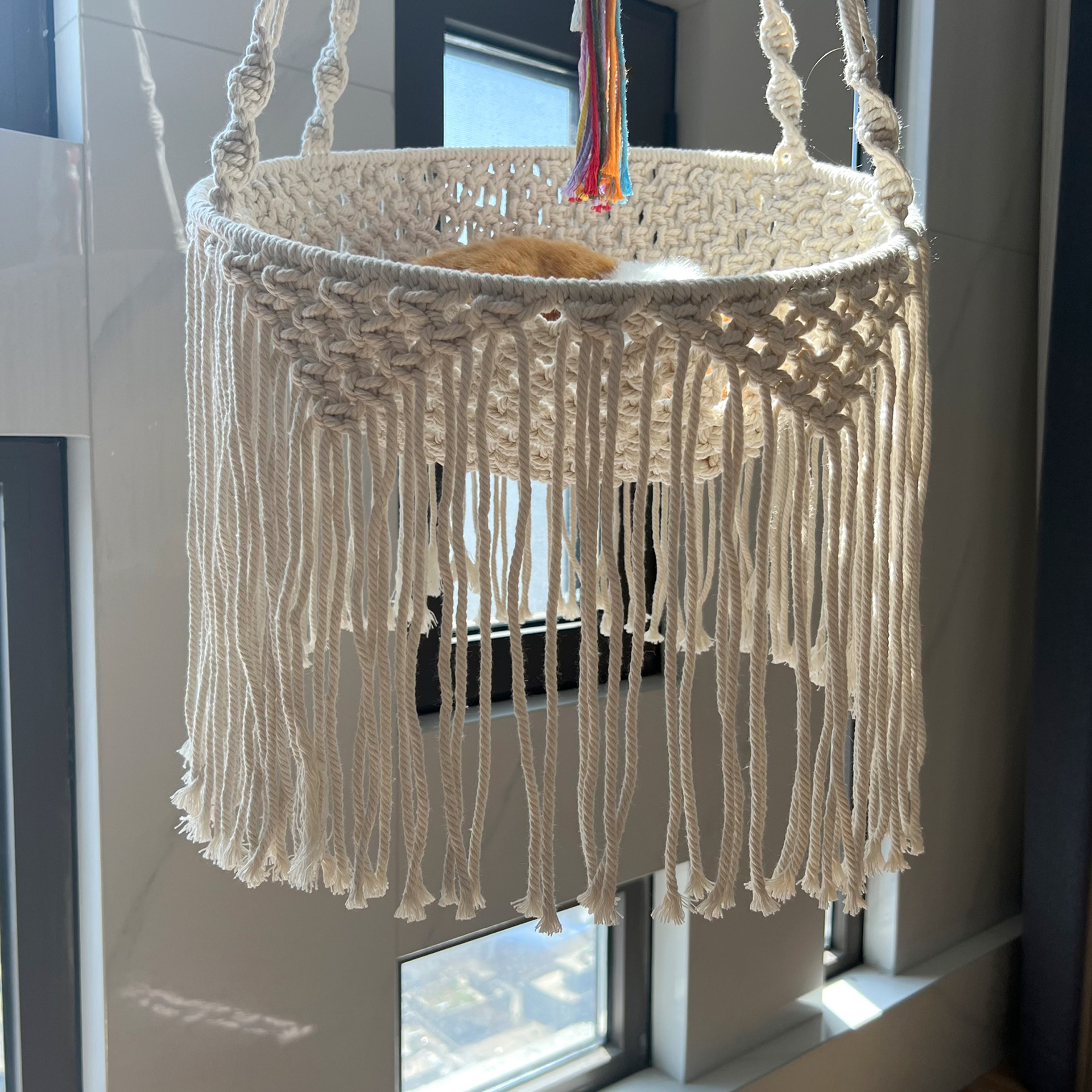 보헤미안 짠 고양이 둥지 북유럽 태피스트리 그물 가방 사계절 유니버설 고양이 둥지 애완 동물 해먹 스윙 아마존스토어 가기