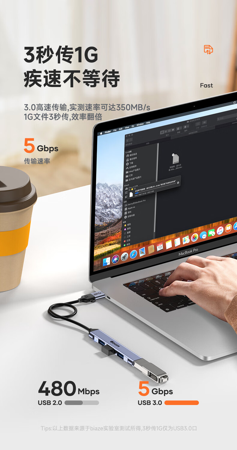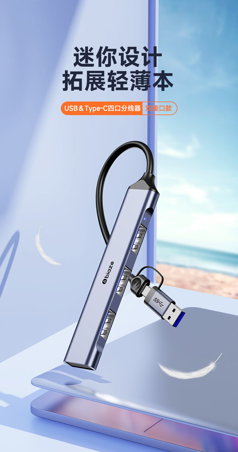 비아즈 유형-c/usb3.0 스플리터 고속 4 포트 확장 도크 허브 허브스토어 가기