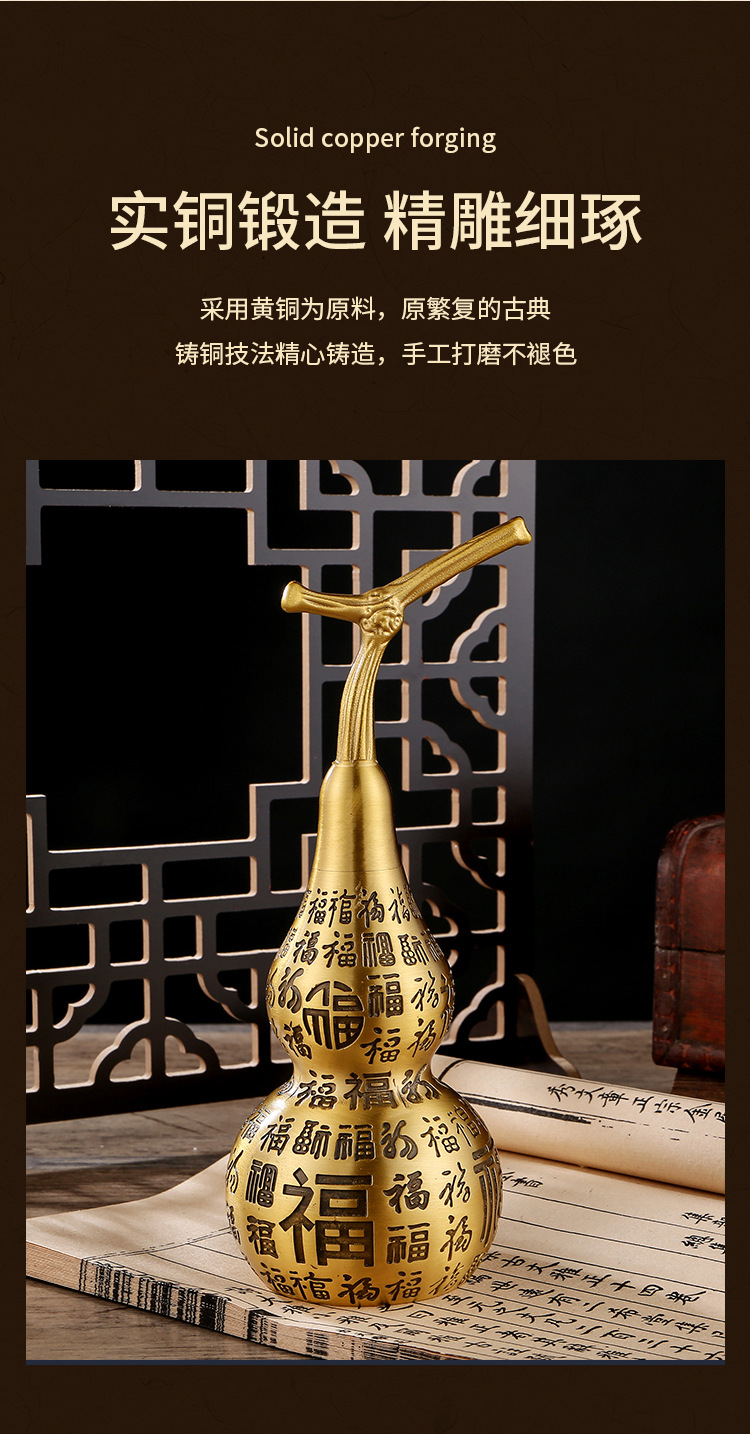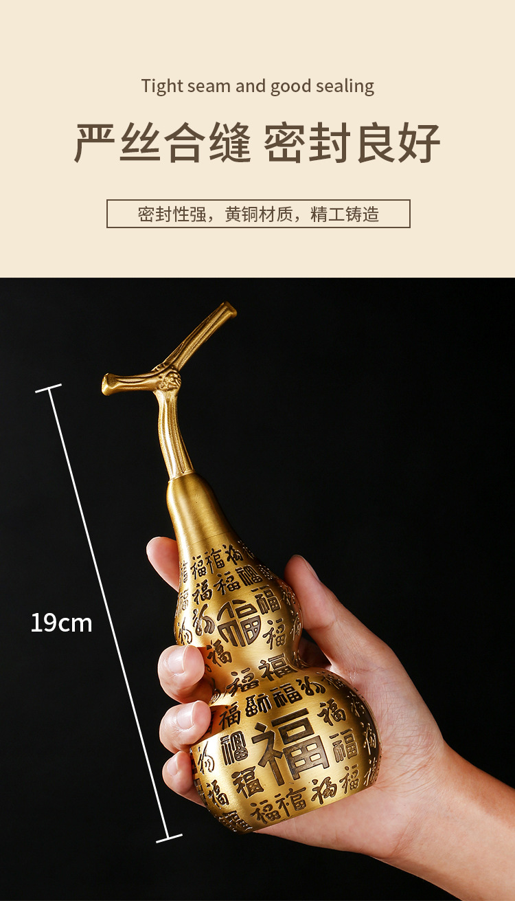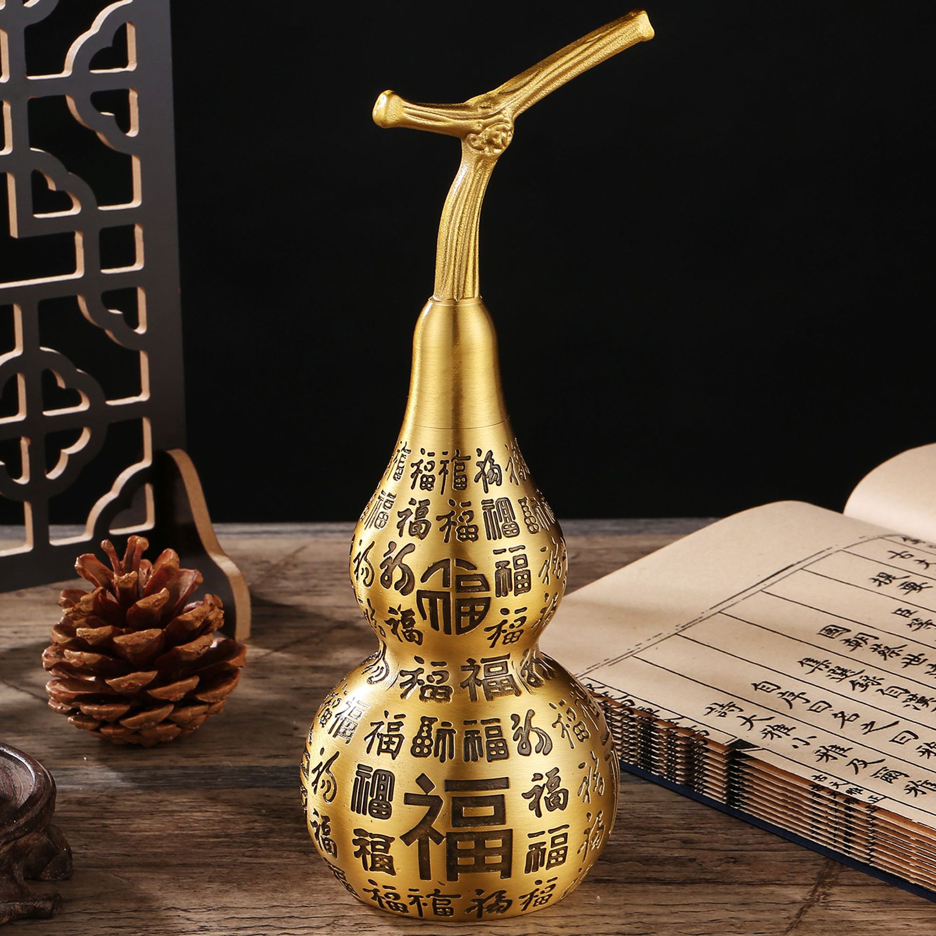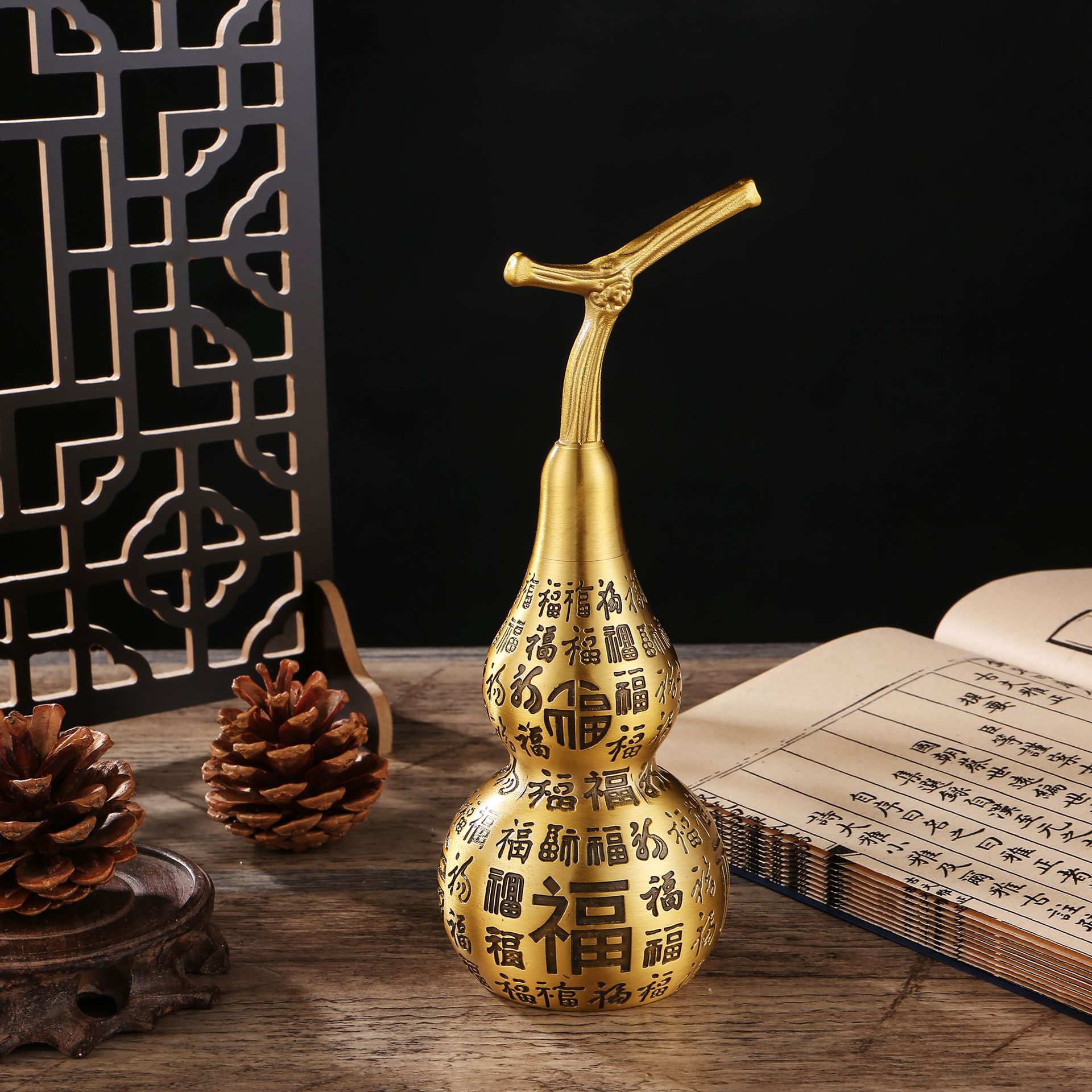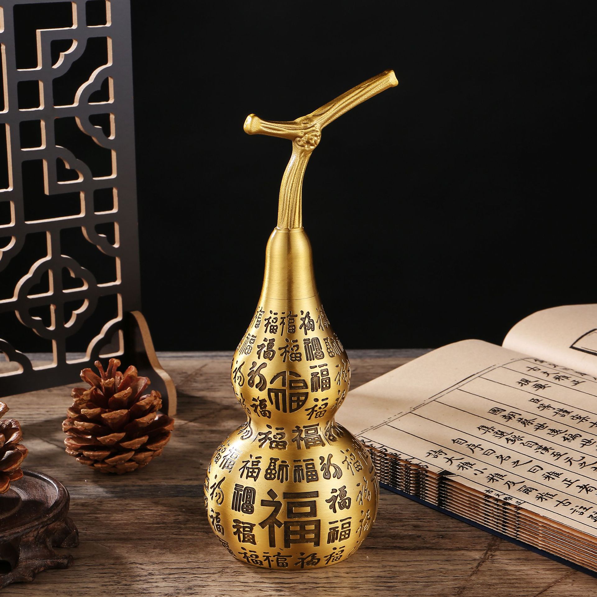 순수 황동 상부 및 하부 개방 중공 바이푸 조롱박 조각 대형 구리 조롱박 장식품 풀루 공예스토어 가기