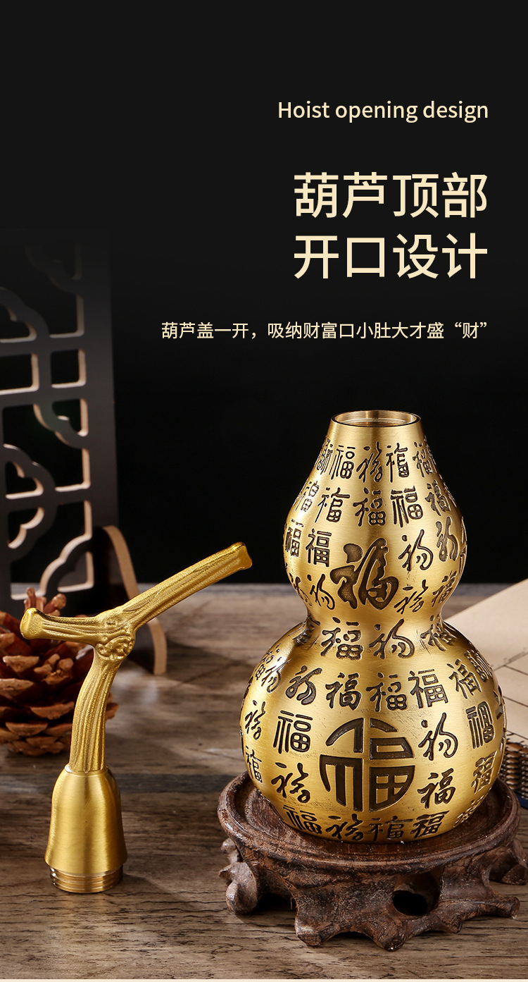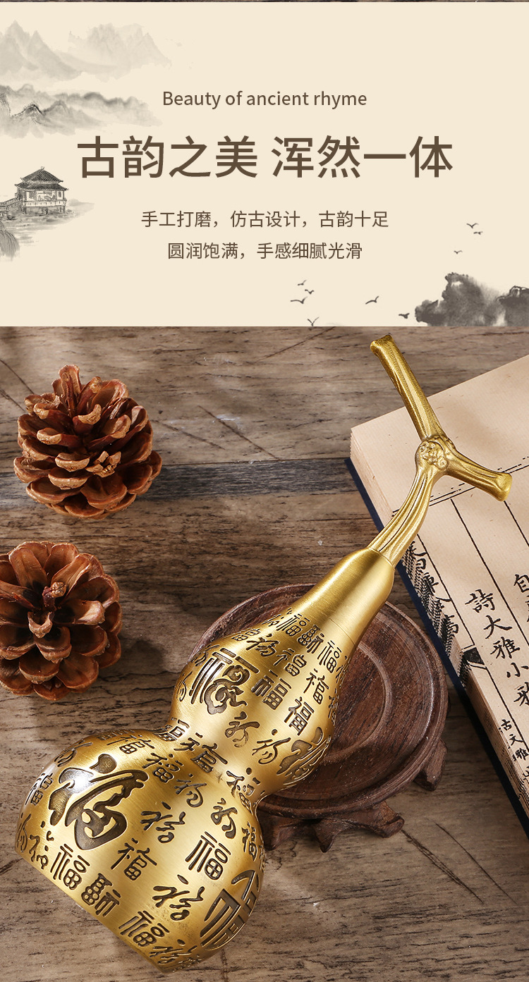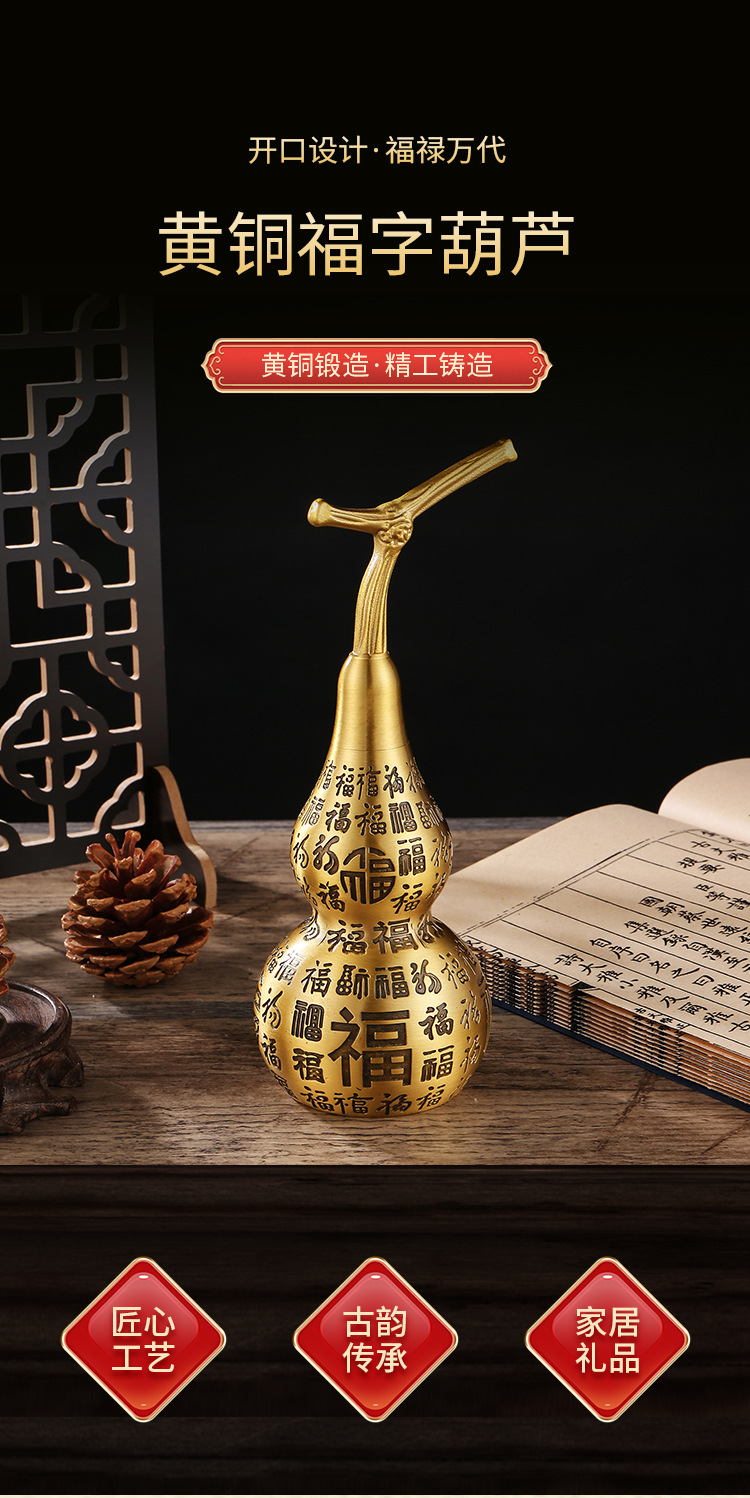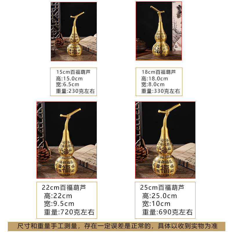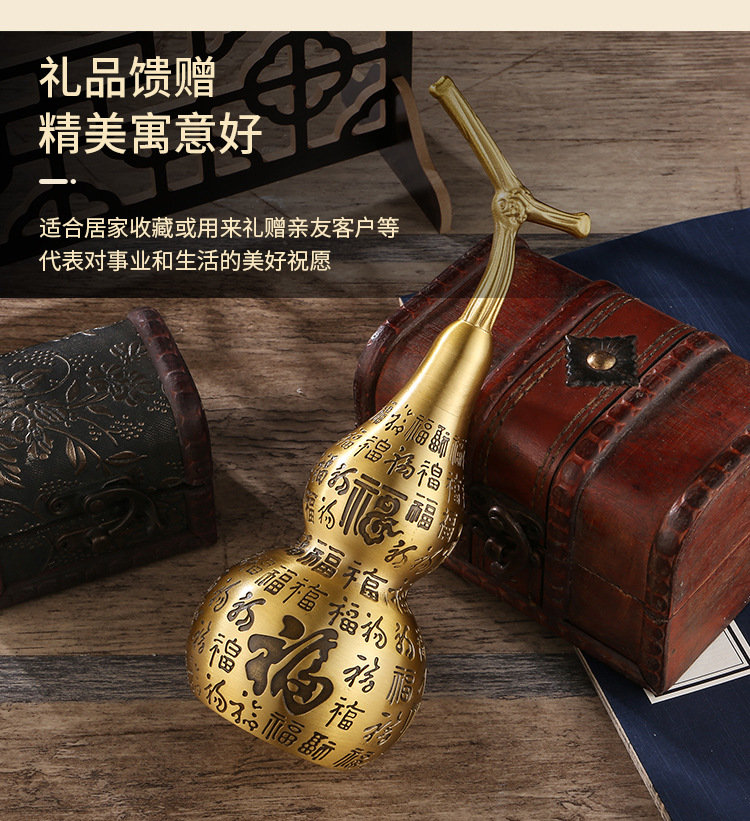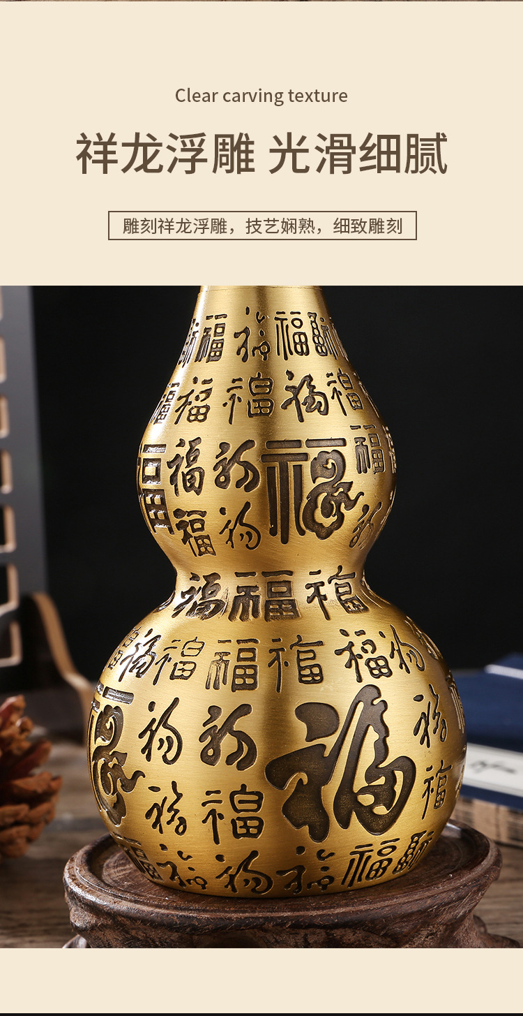 순수 황동 상부 및 하부 개방 중공 바이푸 조롱박 조각 대형 구리 조롱박 장식품 풀루 공예스토어 가기