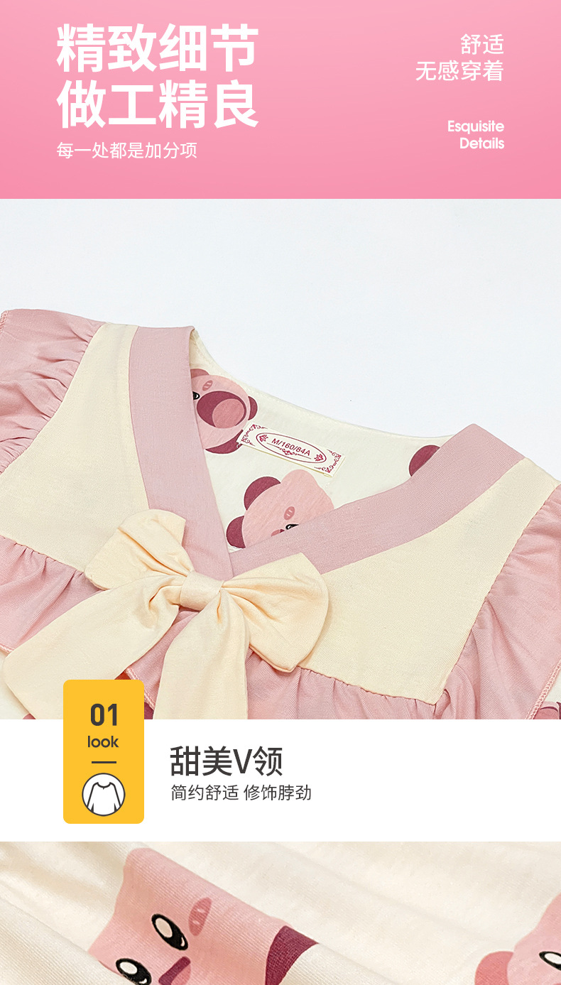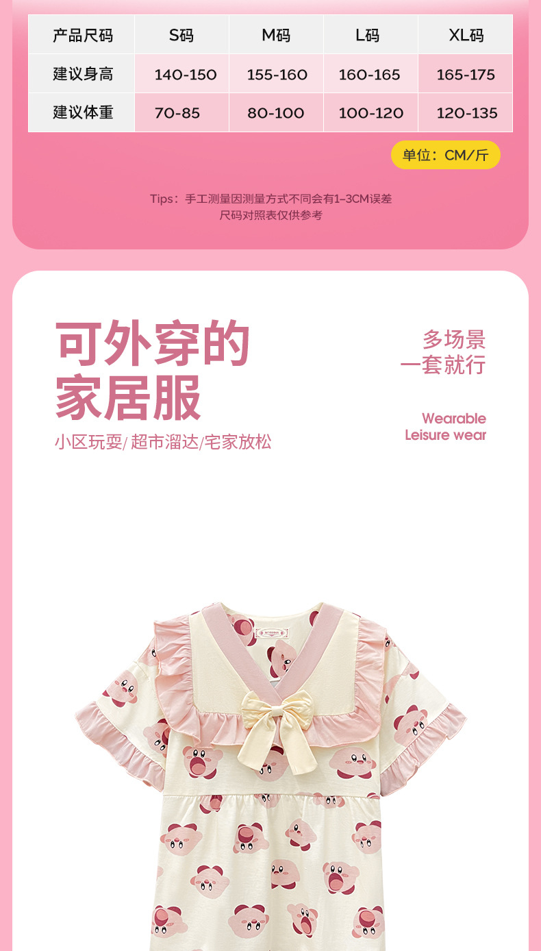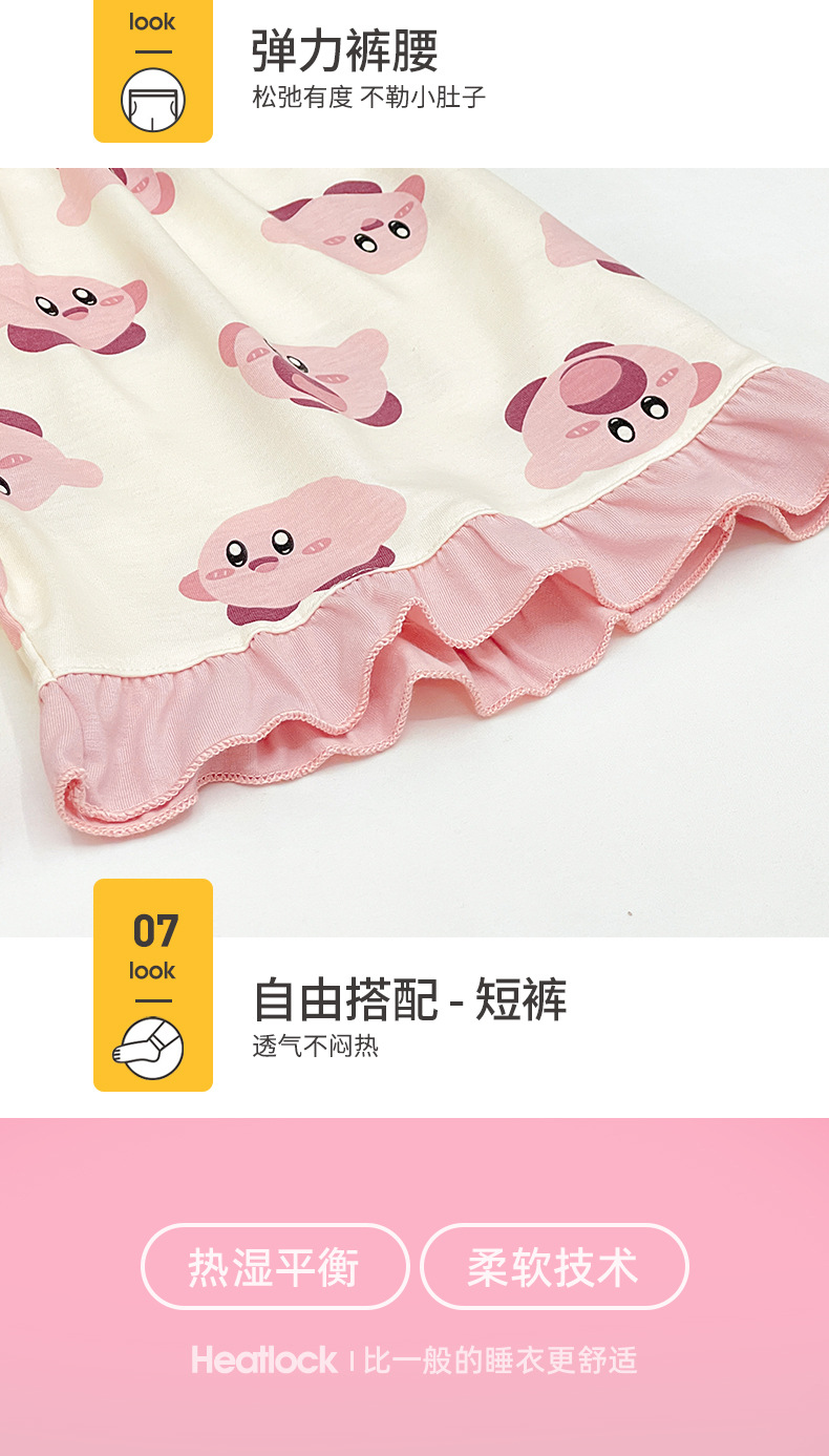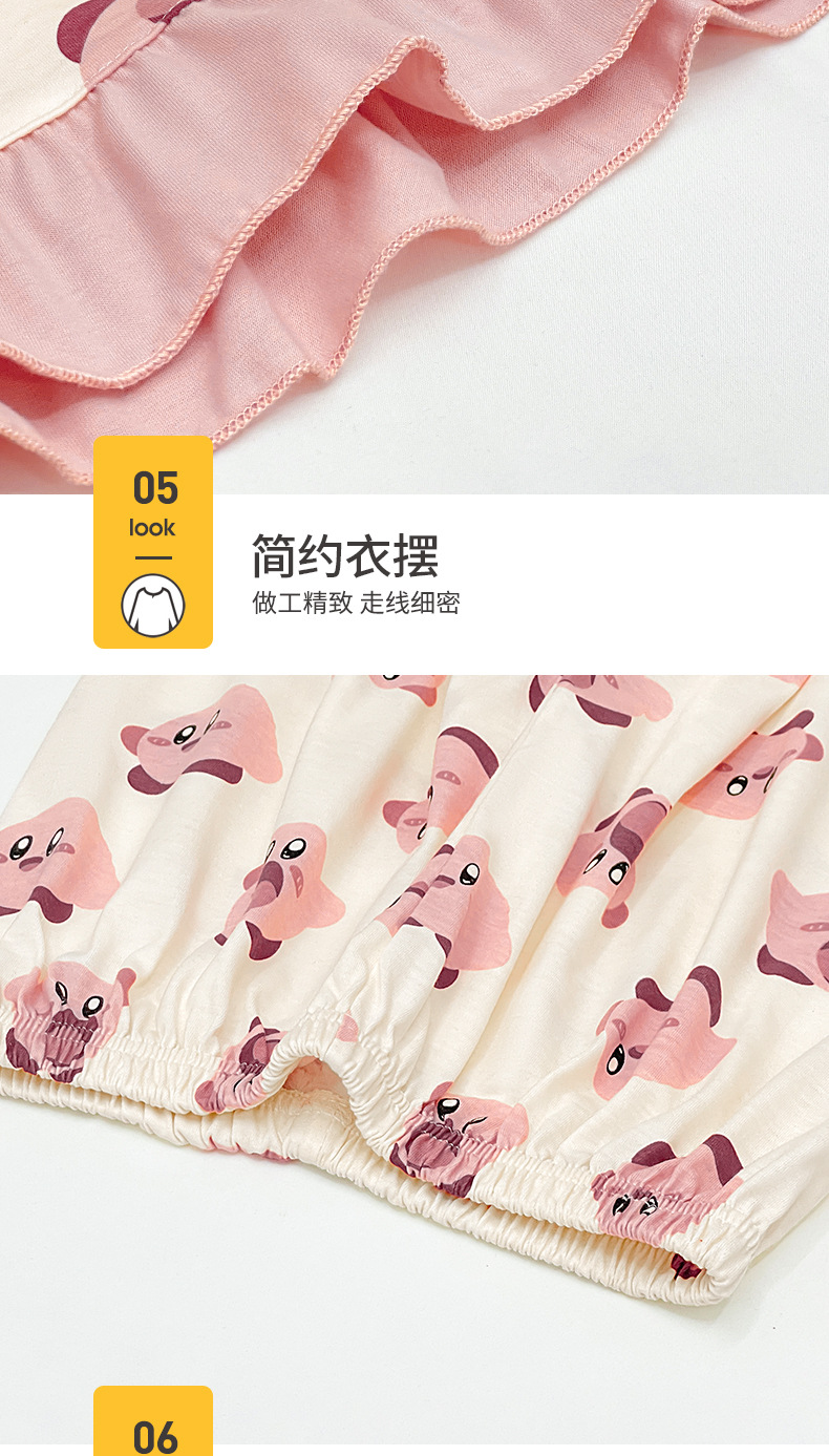 새로운 어린이 잠옷 소녀 여름 반팔 면 인형 칼라 중간 및 큰 어린이 만화 중간 및 큰 어린이 가정 옷 세트스토어 가기