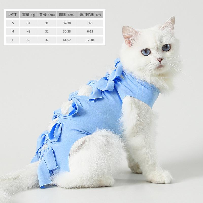 국경 간 고양이 살균 의류 여름 얇은 애완 동물 이유 의류 안티 핥기 탄성 애완 동물 옷 통기성 수술 후 의류