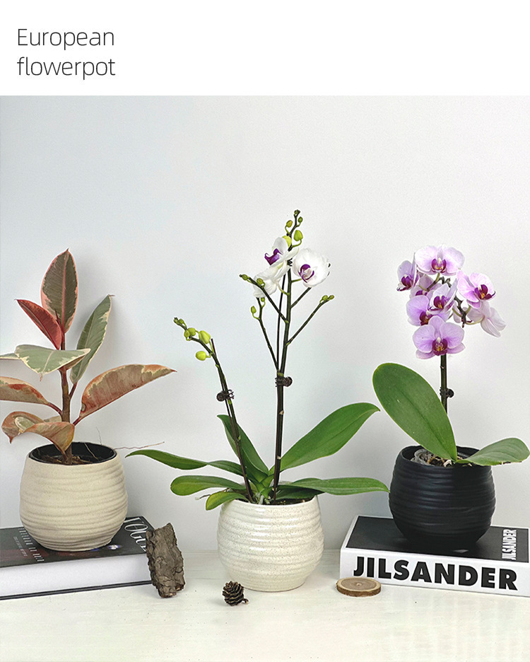 불규칙한 패턴 세라믹 화분 스타일 라운드 세라믹 냄비 녹색 다이어트 호접란 가짜 꽃 인테리어 예술 장식품