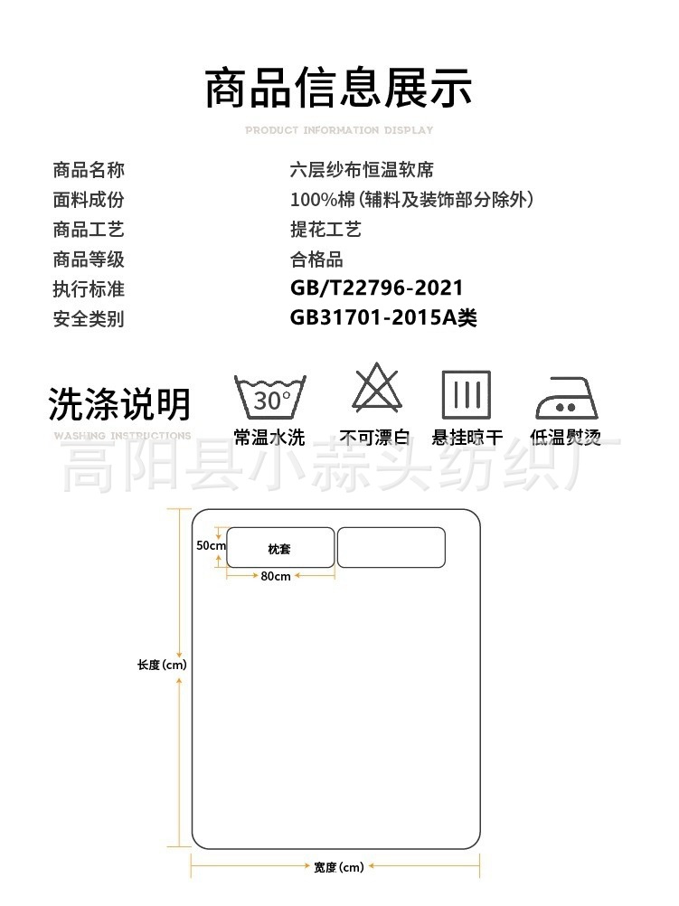 品名:纱布软席枕套