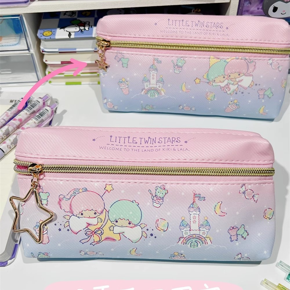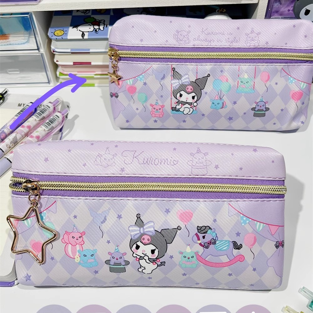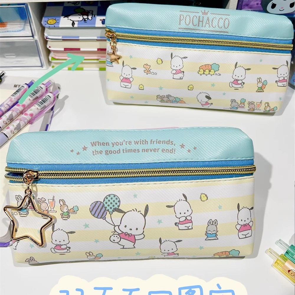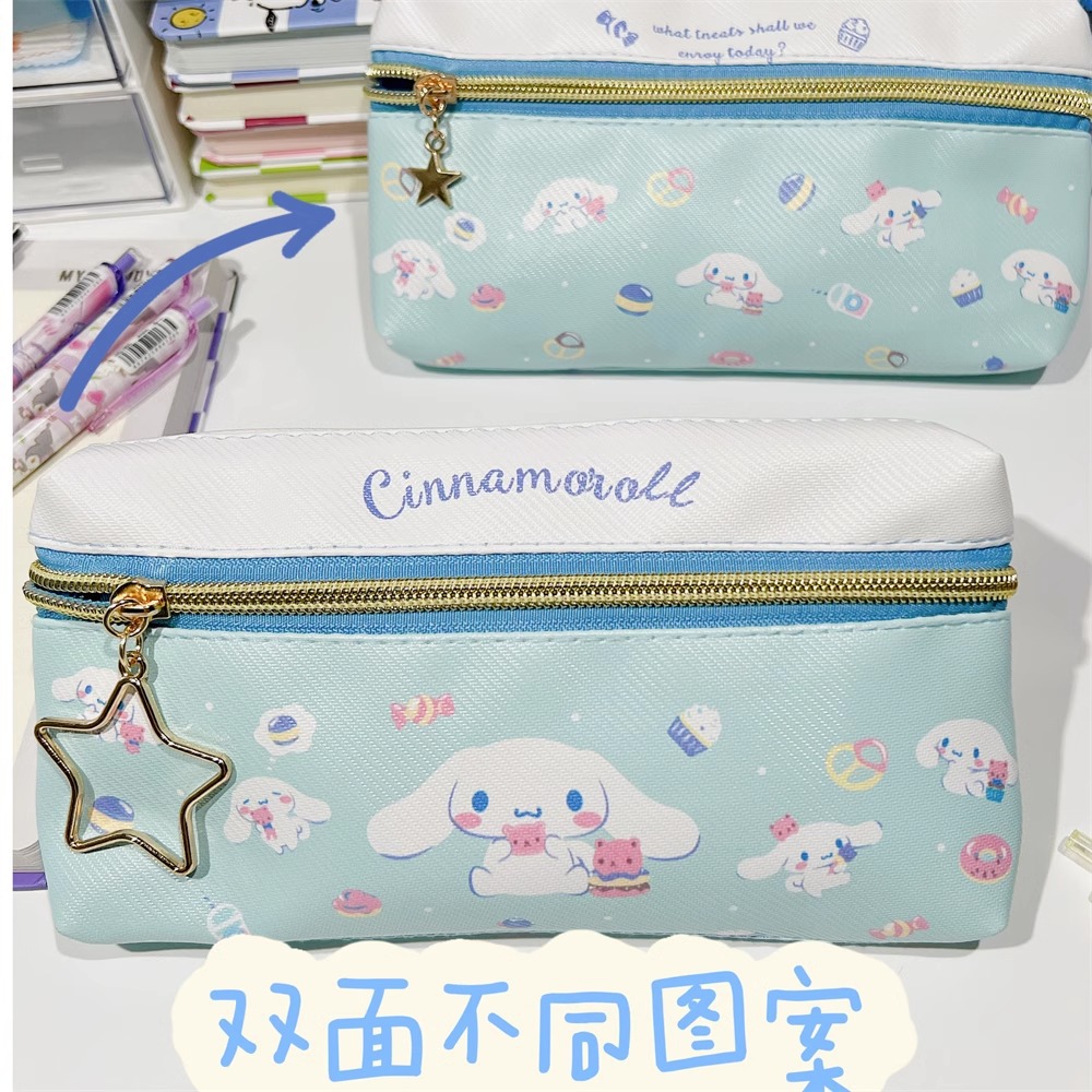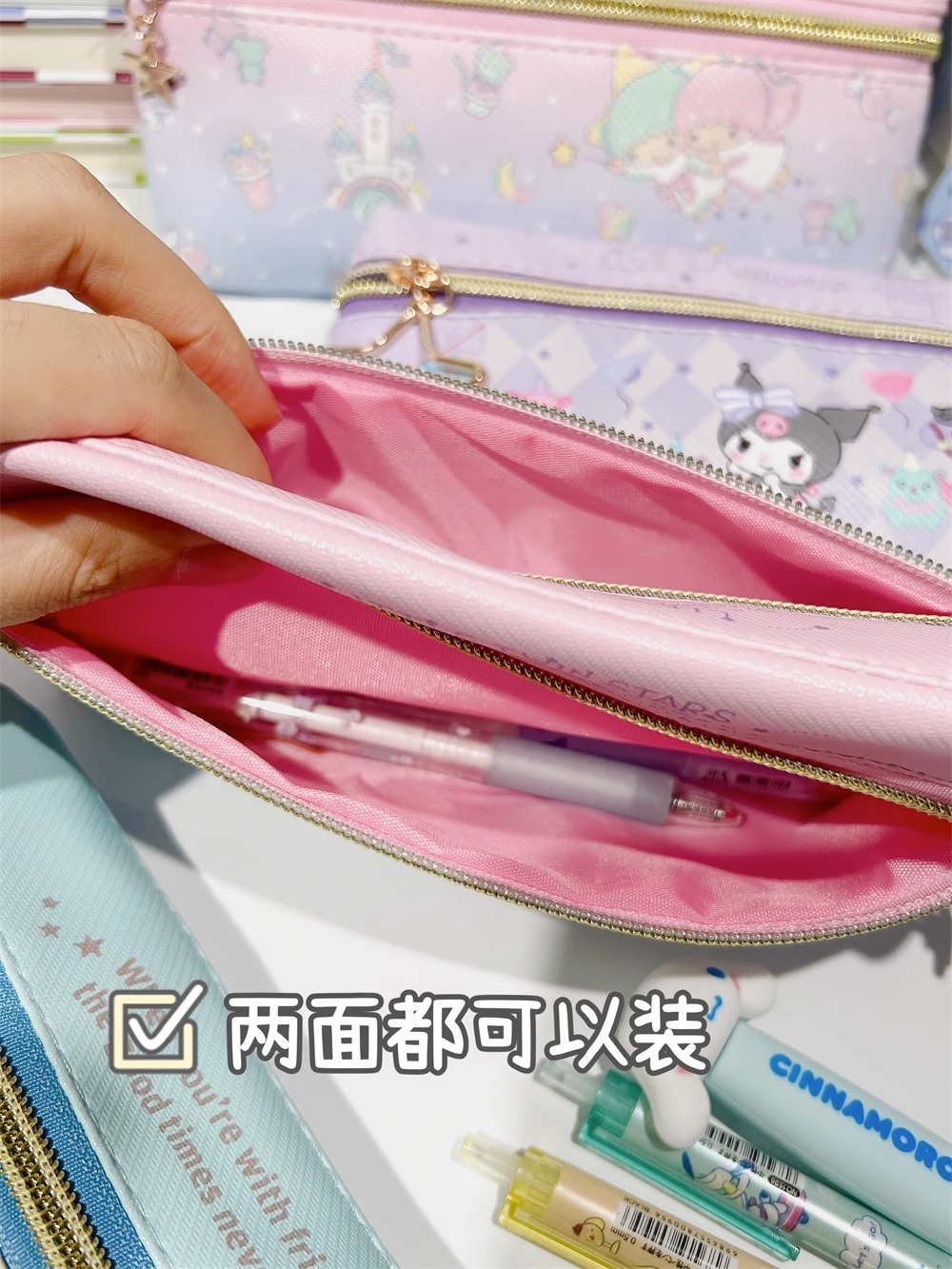 만화 PU 귀여운 더블 지퍼 펜 케이스 학생 문구 가방 대용량 심플 수납 가방 화장품 가방 수납 가방스토어 가기