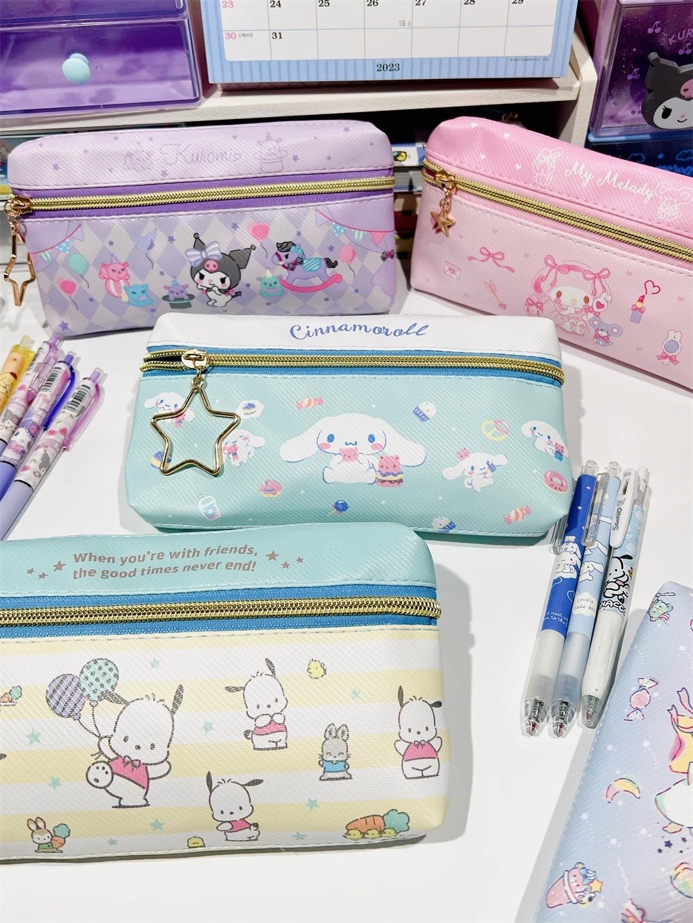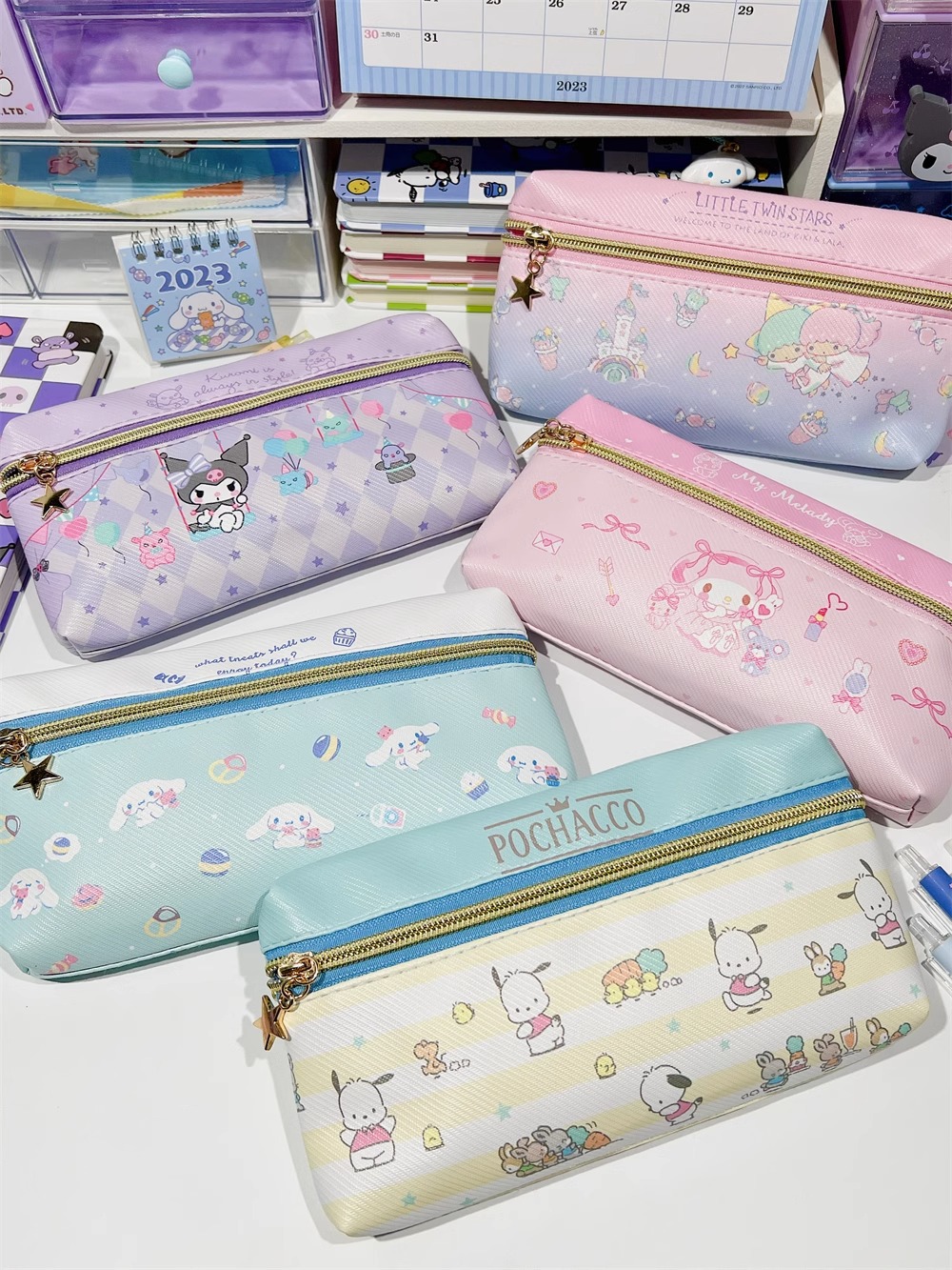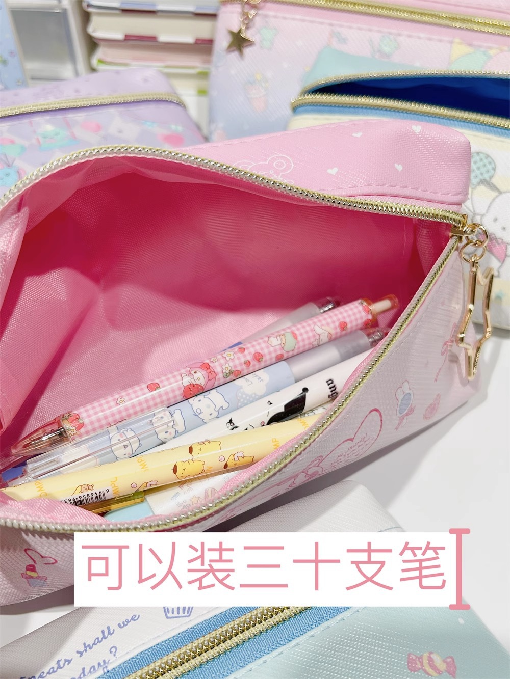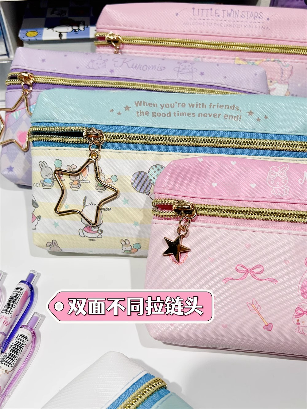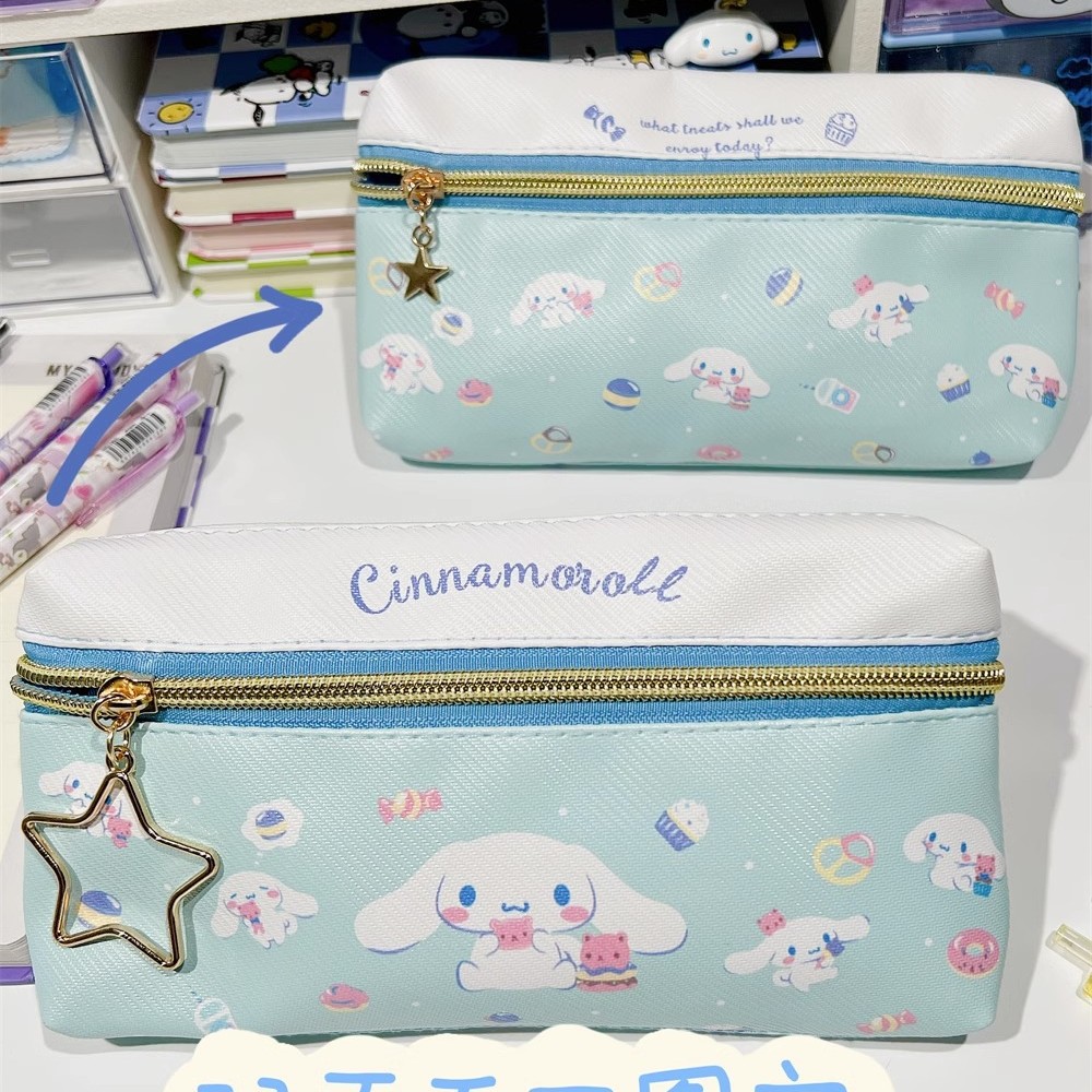 만화 PU 귀여운 더블 지퍼 펜 케이스 학생 문구 가방 대용량 심플 수납 가방 화장품 가방 수납 가방스토어 가기