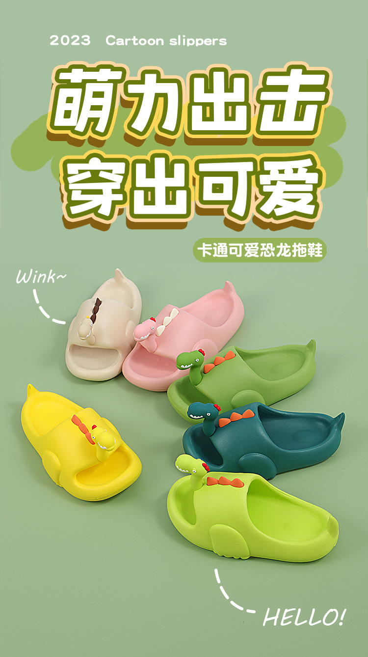 공룡 어린이 슬리퍼 여름 소년 만화 어린이 실내 미끄럼 방지 목욕 아기 소녀 큰 어린이를위한 부모-자식 샌들스토어 가기