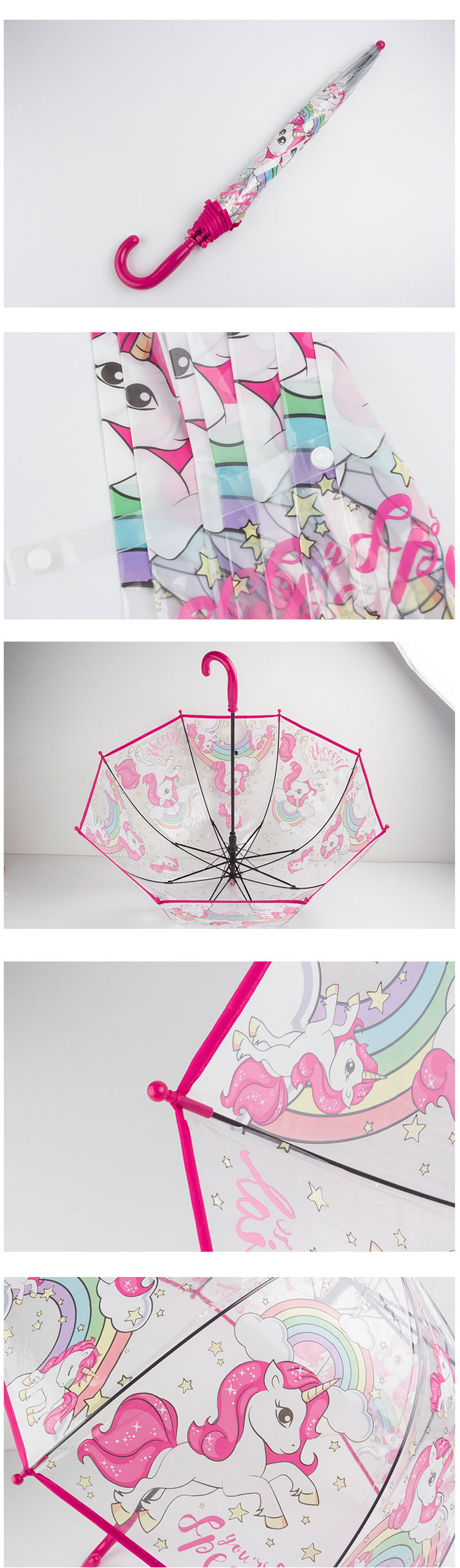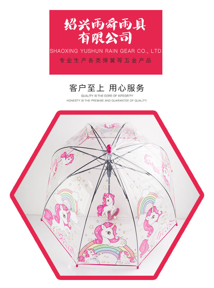 유니콘 투명 어린이 우산 in 일본과 한국의 아치형 섬유 자동 포 우산 학생 아기 우산 도매 로고