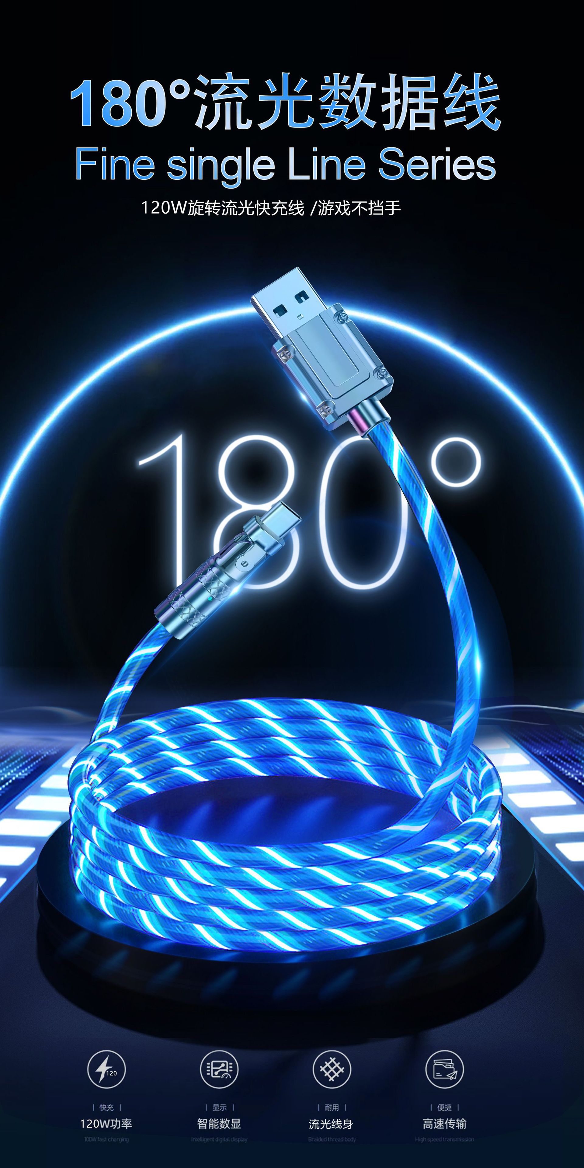 신형 라이트닝 180도 디지털 엘보우 데이터 케이블, 안드로이드 화웨이 휴대폰 USB 충전 케이블에 적합스토어 가기