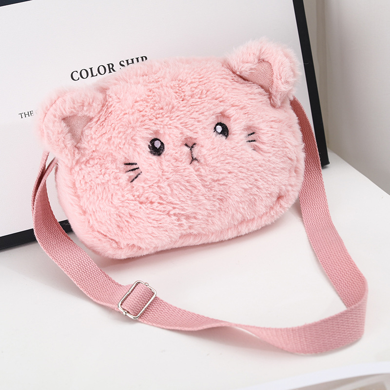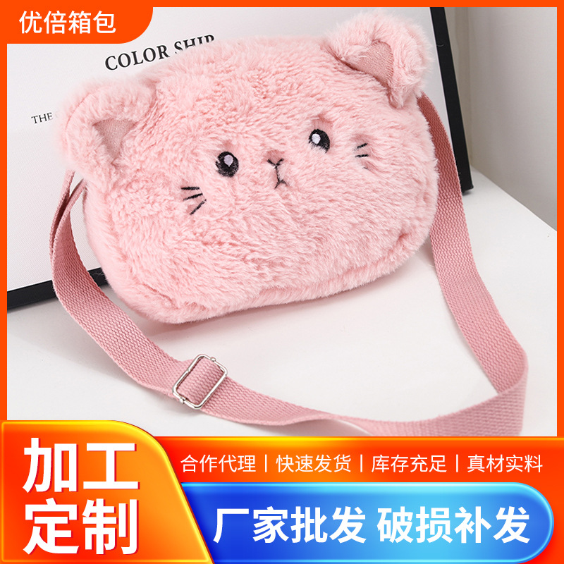 新款卡通毛绒儿童礼品包2023韩版潮可爱小猫零钱包女孩单肩斜挎包