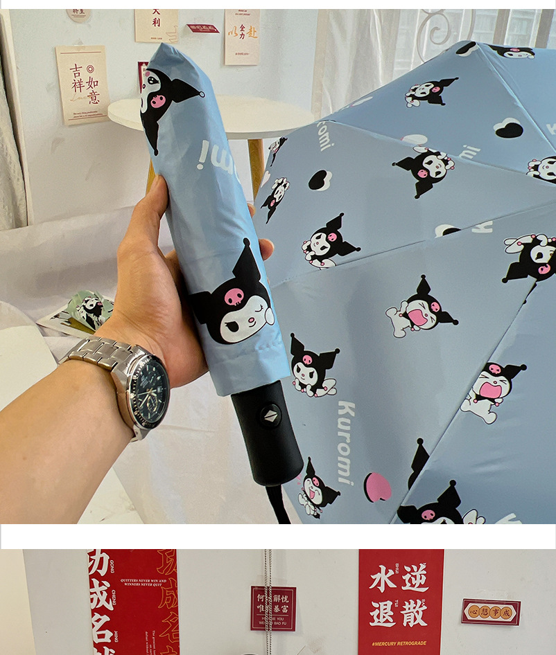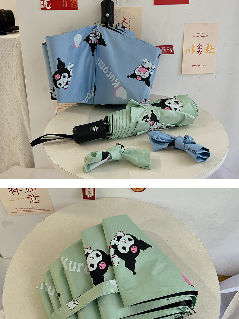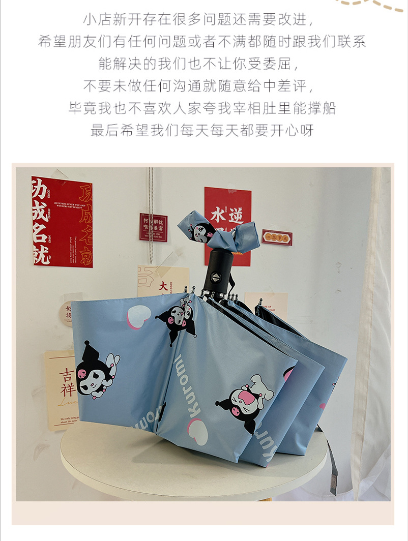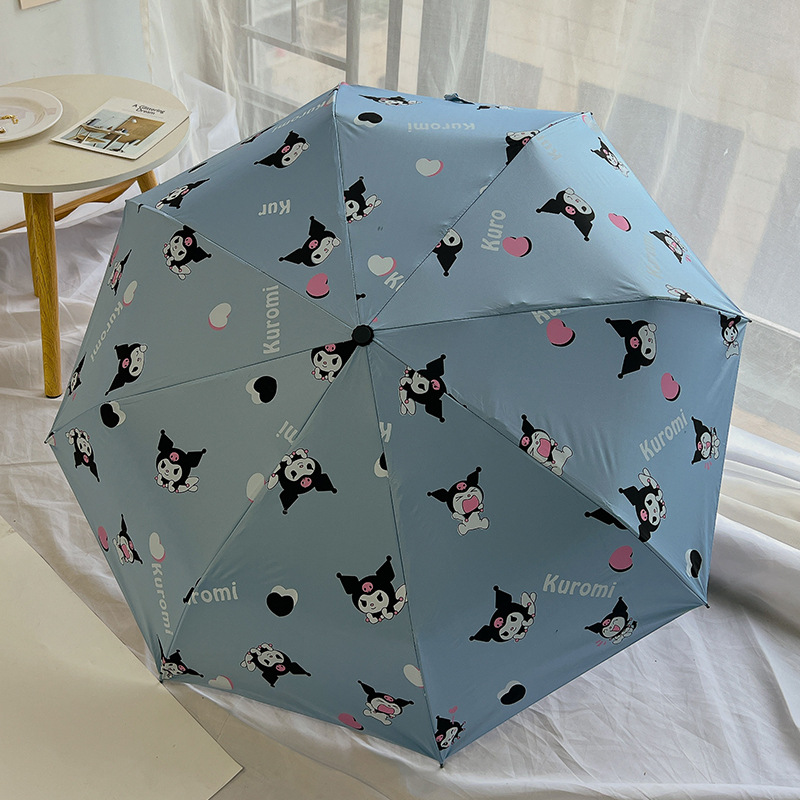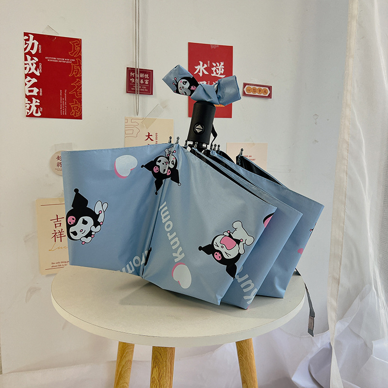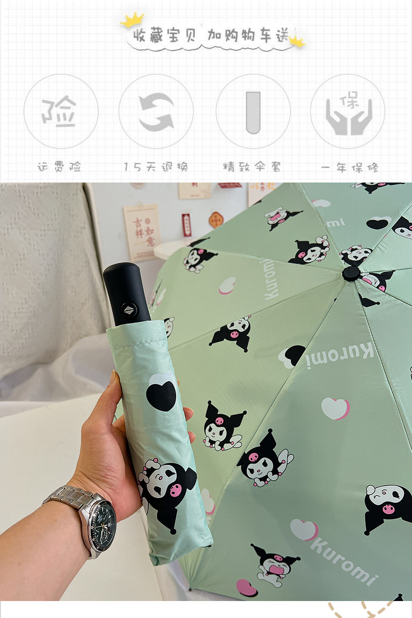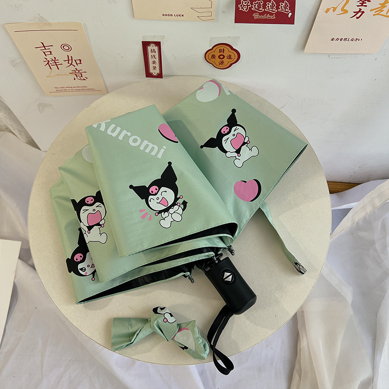 산리오 쿨로 미 소녀 자동 태양 우산 태양 우산 태양 우산 접이식 검은 접착제 태양 보호 UV 보호