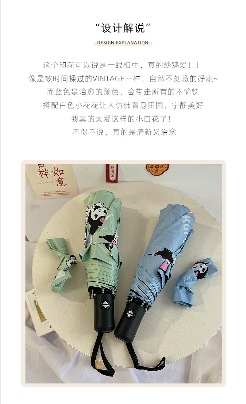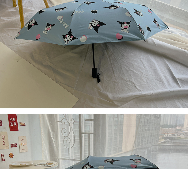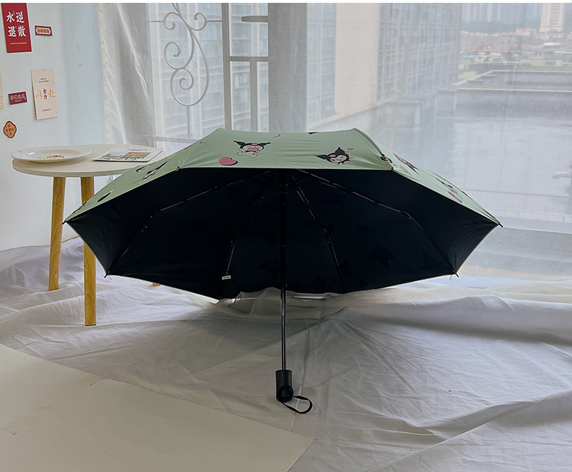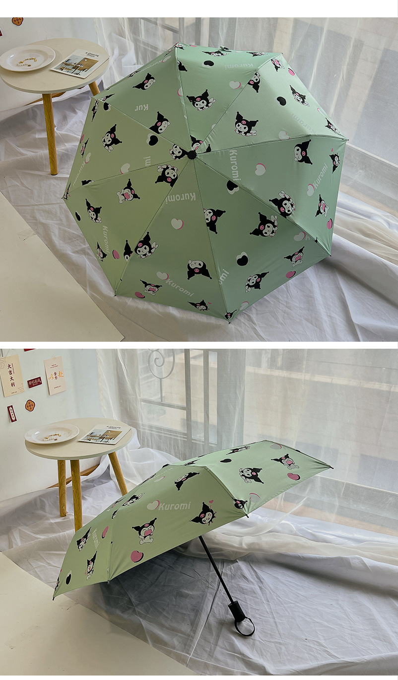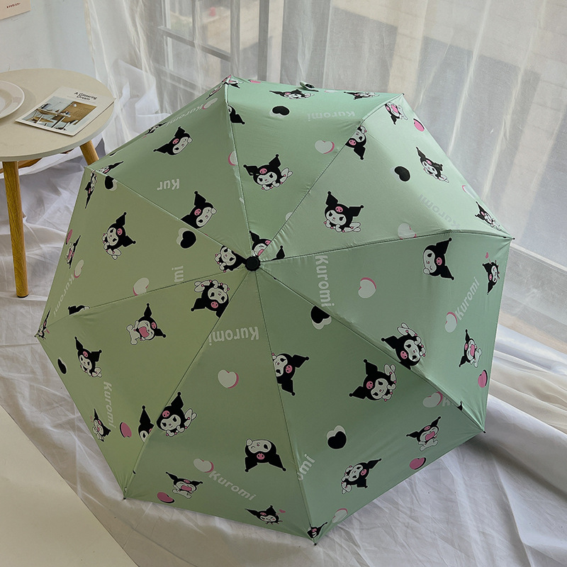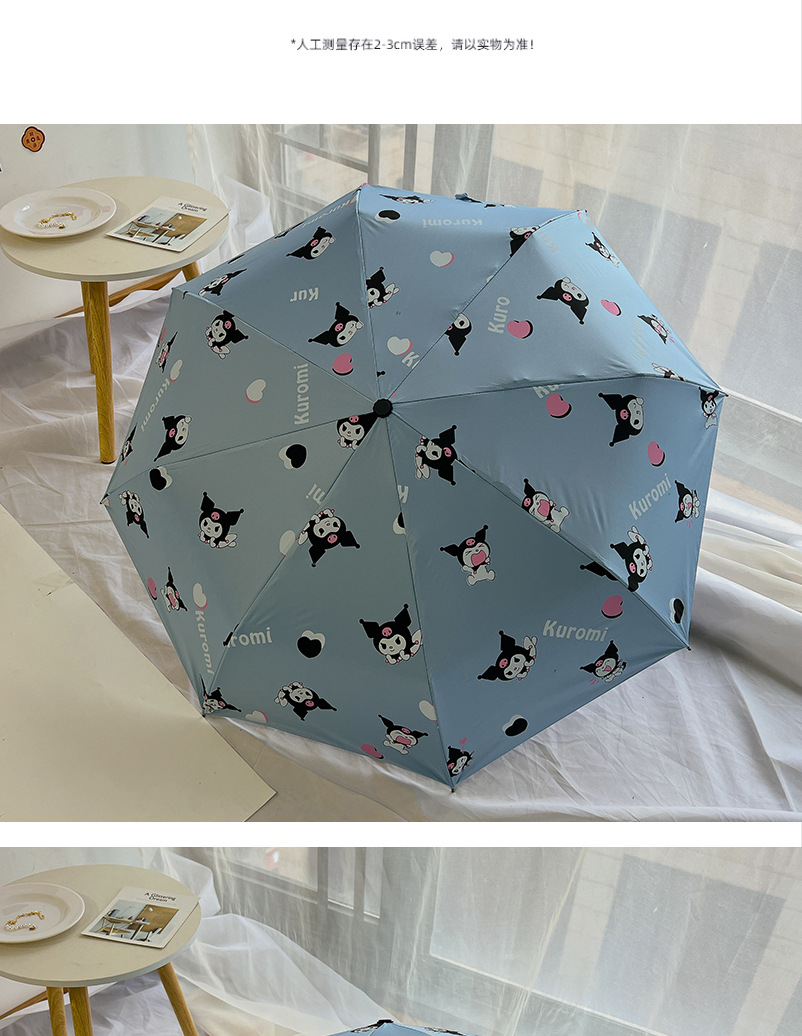 산리오 쿨로 미 소녀 자동 태양 우산 태양 우산 태양 우산 접이식 검은 접착제 태양 보호 UV 보호