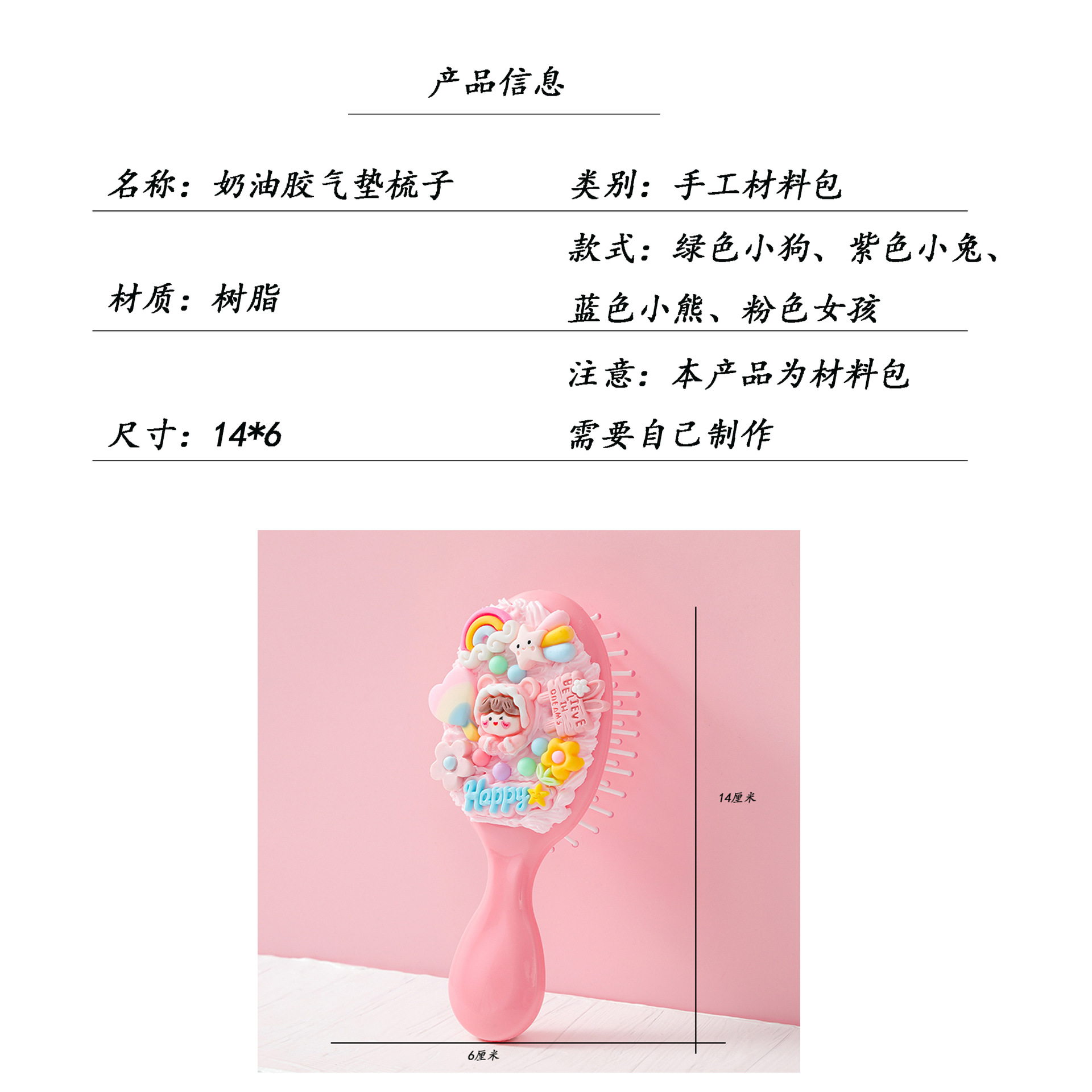 뜨거운 판매 어린이 diy 에어 쿠션 빗 수제 크림 접착제 재료 패키지 수제 에어백 빗 스톨 장난감 도매
