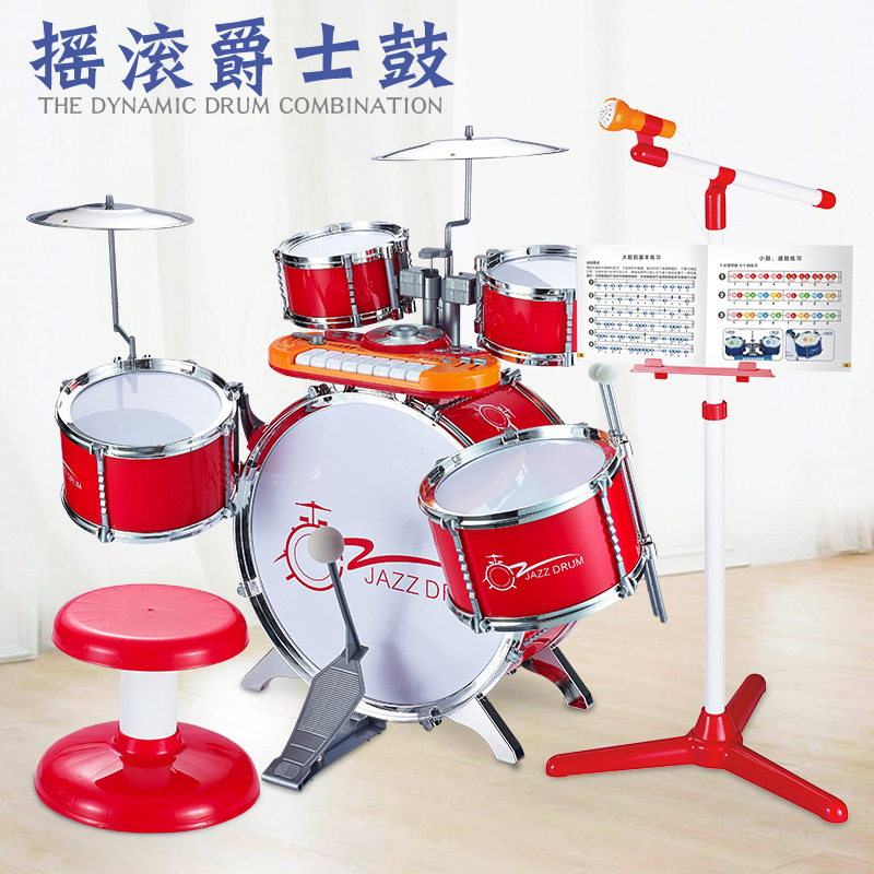 어린이 드럼 세트 장난감 초보자 드럼 악기 2 세 소년 계몽 재즈 드럼 홈 아기 3스토어 가기