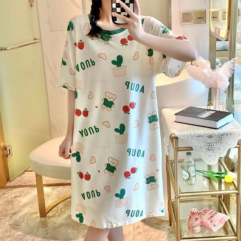 잠옷 여자의 여름 느슨한 플러스 사이즈 반팔 만화 귀여운 소녀 학생 얇은 잠옷 가정 옷 인터넷 인기있는 스타일스토어 가기