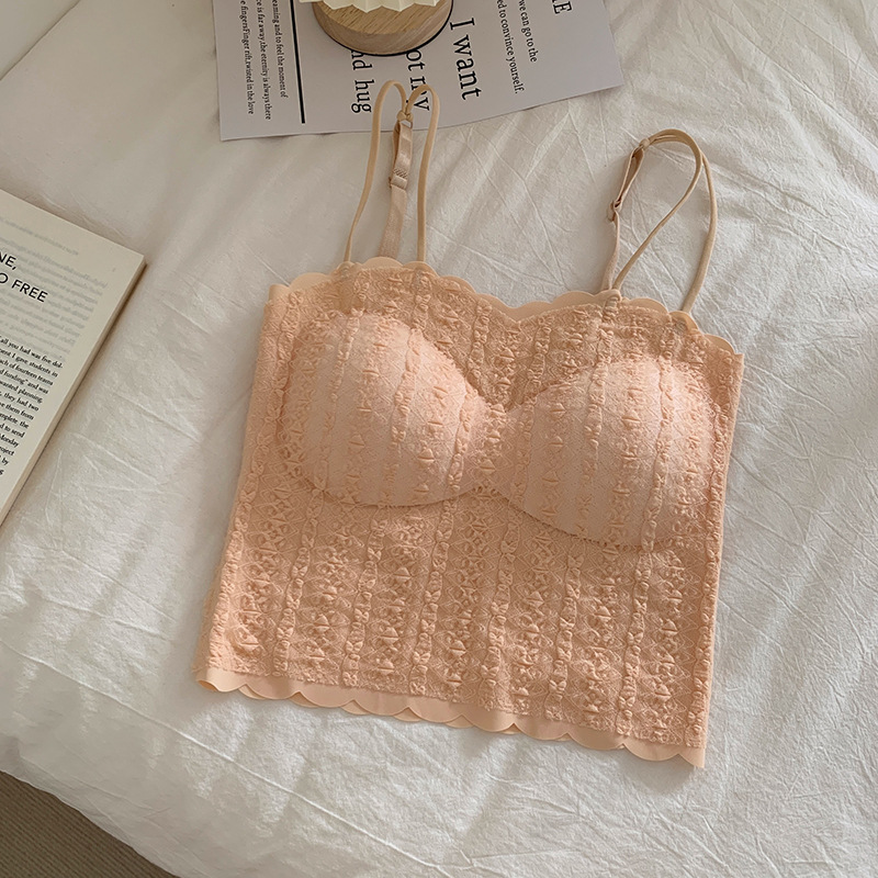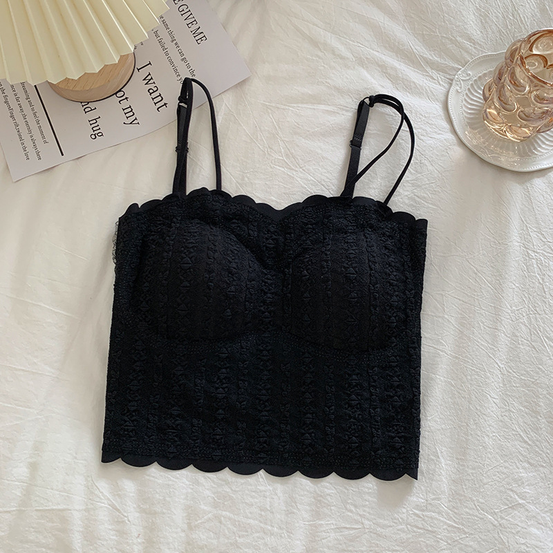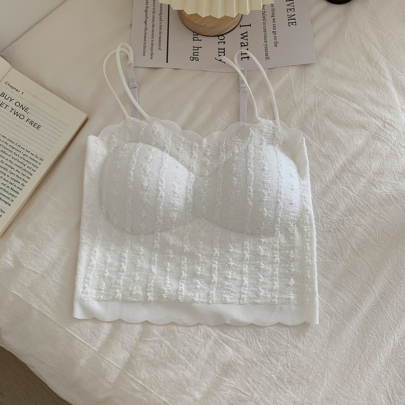 폭발적인 퓨어 아이스 실크 레이스 더블 슬링 가슴 패드를 감싸는 아름다운 등 조끼 가슴 내부 착용 슬림핏 쇼트 탑
