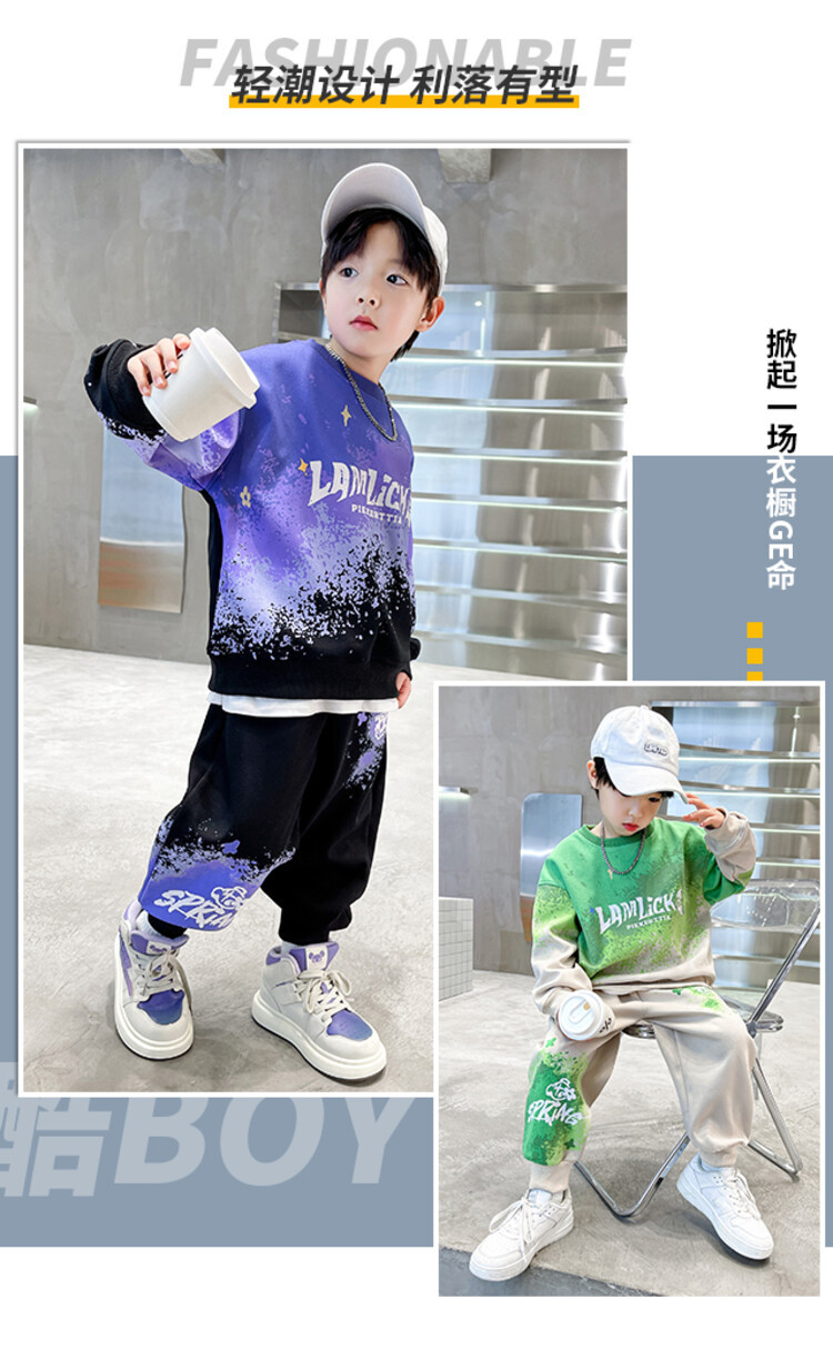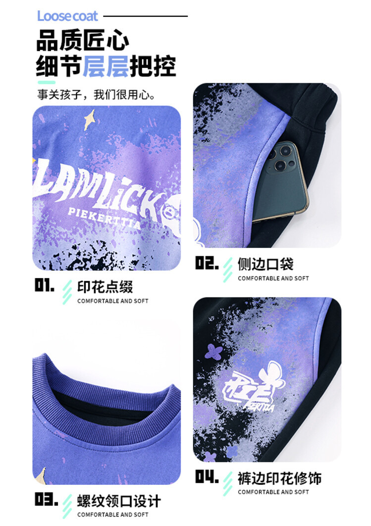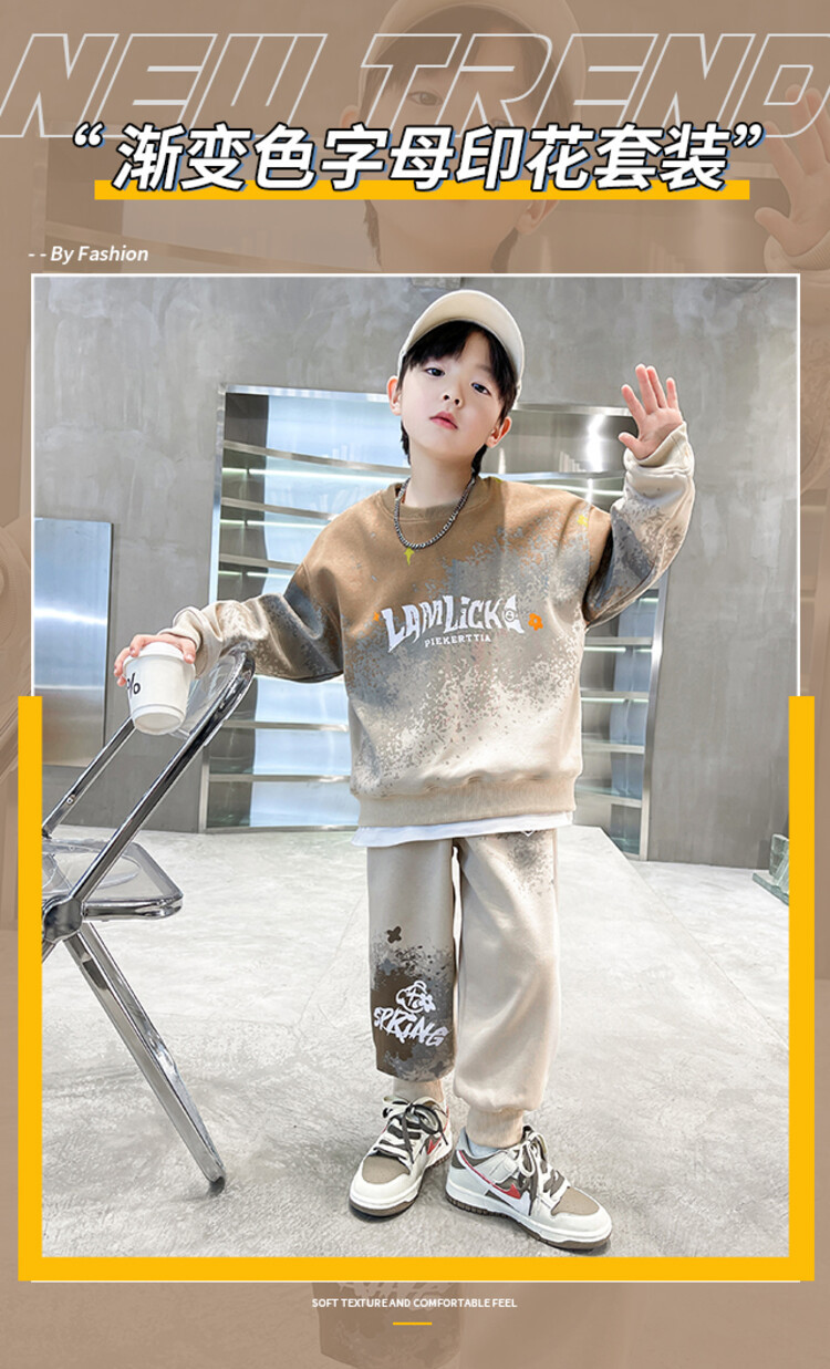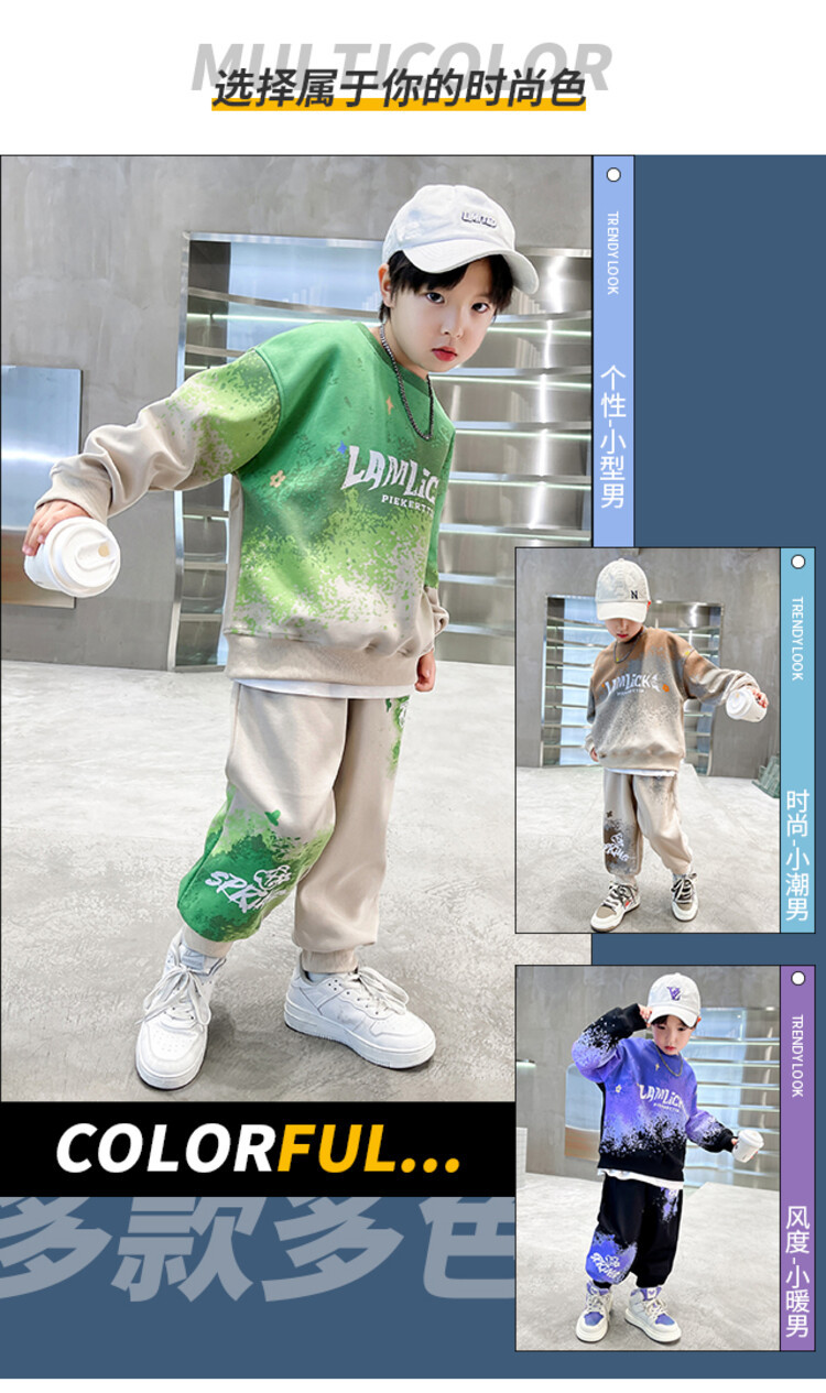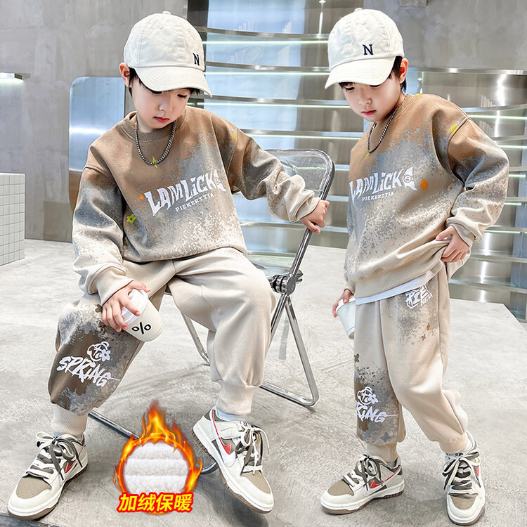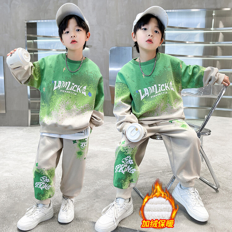소년의 대외 무역 겨울 2024 새로운 어린이 외국 스타일의 기모 패딩 따뜻한 그라디언트 컬러 프린트 스웨터 투피스 세트스토어 가기