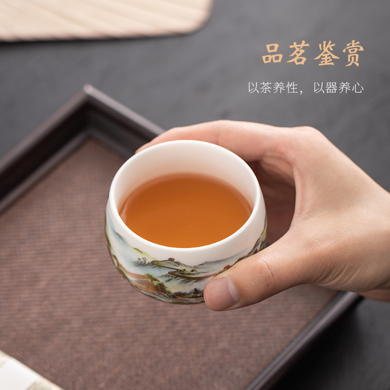 데화 양고기 옥 화이트 도자기 찻잔 시음 컵 마스터 컵 쿵후 싱글 컵 가정용 세라믹 개인 컵 도매 로고