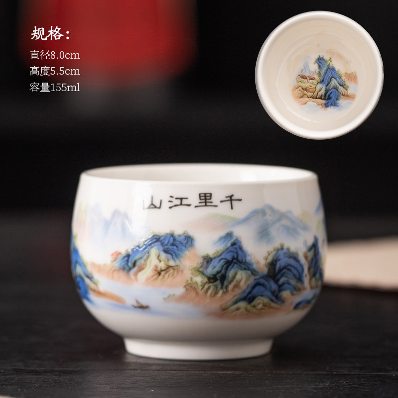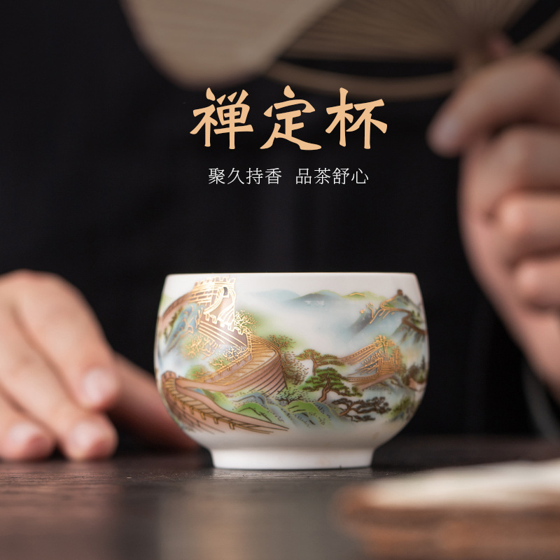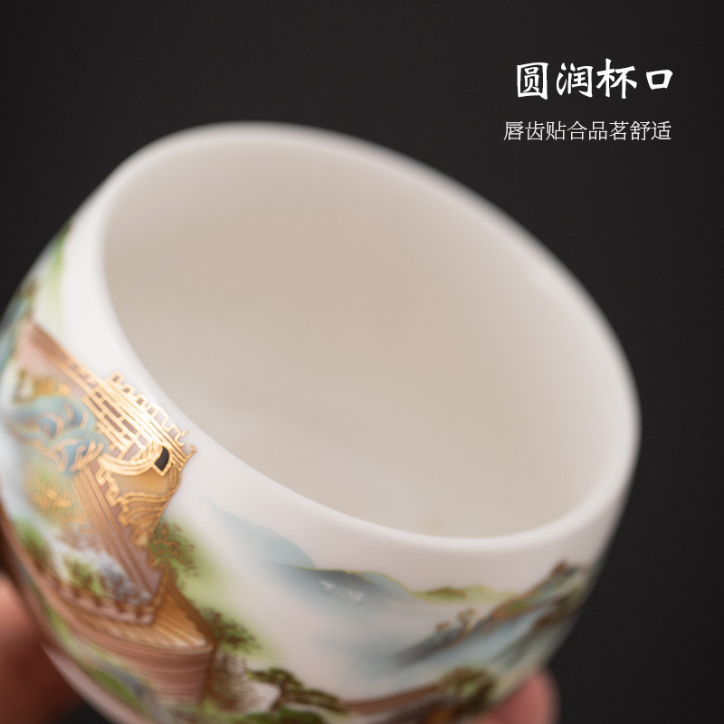 데화 양고기 옥 화이트 도자기 찻잔 시음 컵 마스터 컵 쿵후 싱글 컵 가정용 세라믹 개인 컵 도매 로고스토어 가기