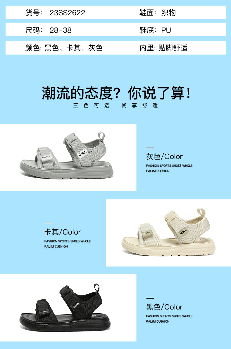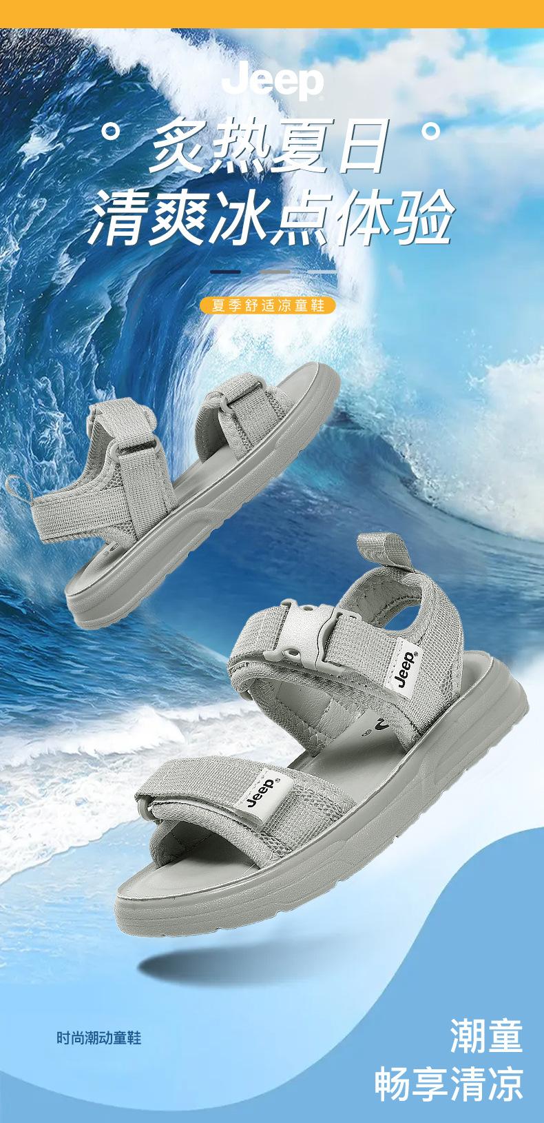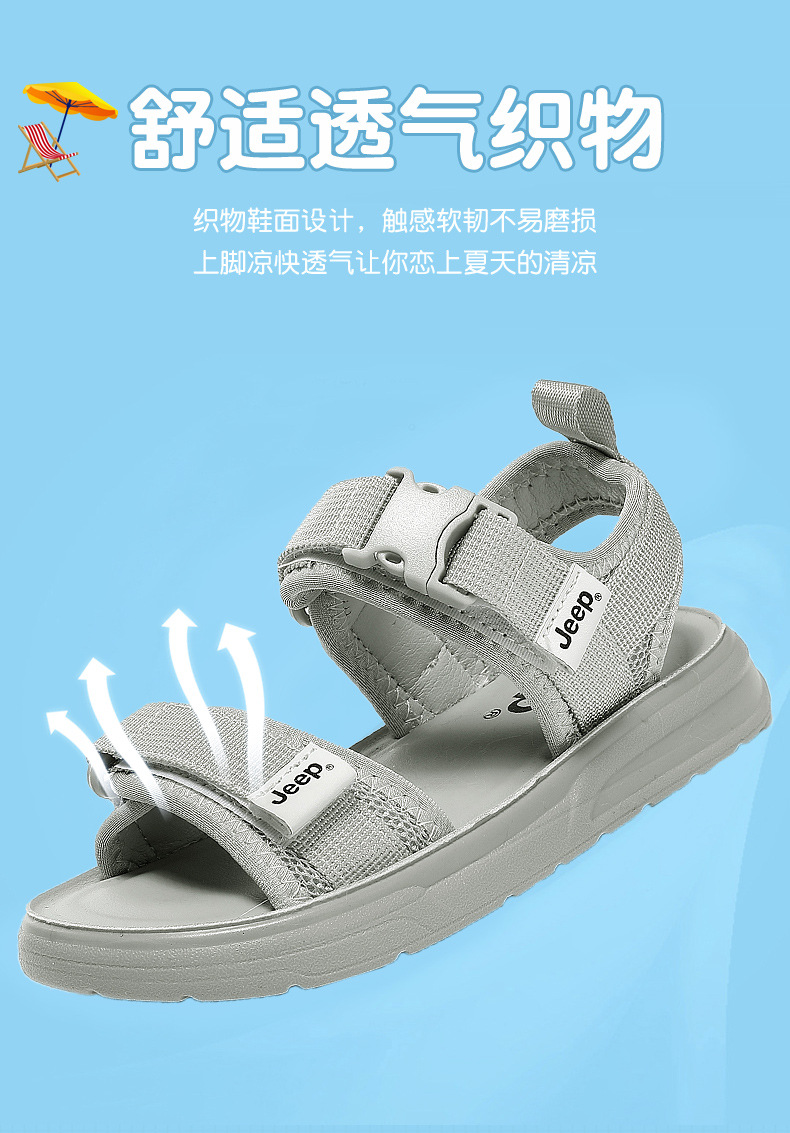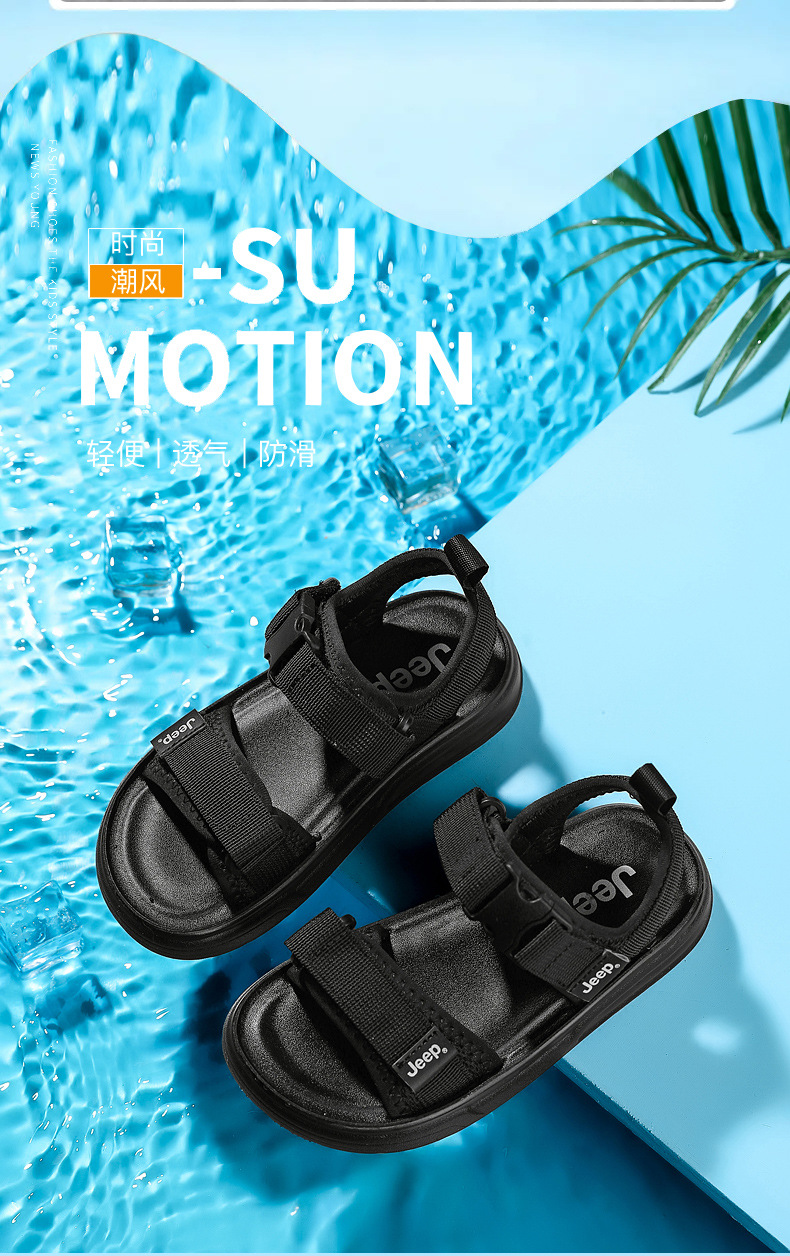 지프 어린이 스포츠 샌들 여름 여름 2023 새로운 대형 어린이 부드러운 바닥 미끄럼 방지 어린이 비치 신발