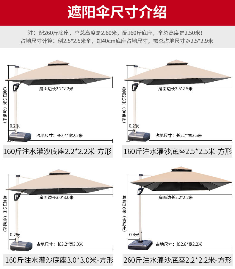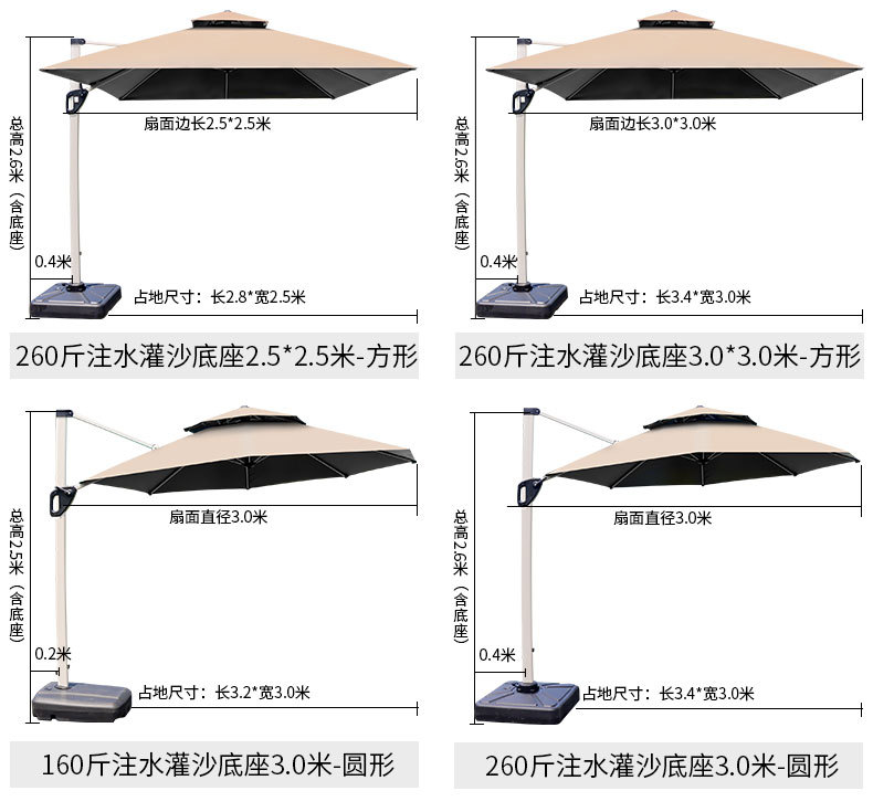 • [5cm 원기둥] 120kg 수조 부착 2.5 m 정사각형의 우산