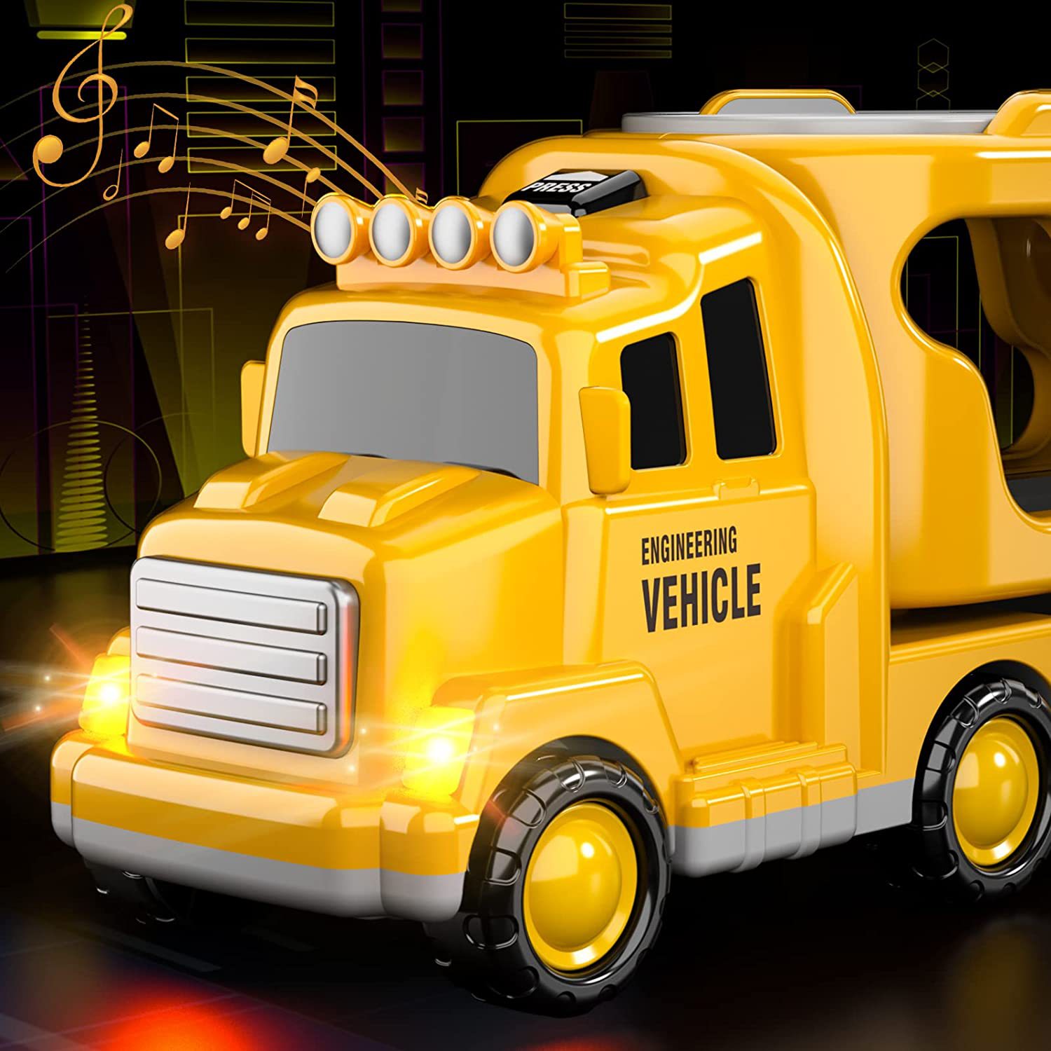 • 노란색 5-in-1 엔지니어링 운송 차량(빛과 음악 포함)