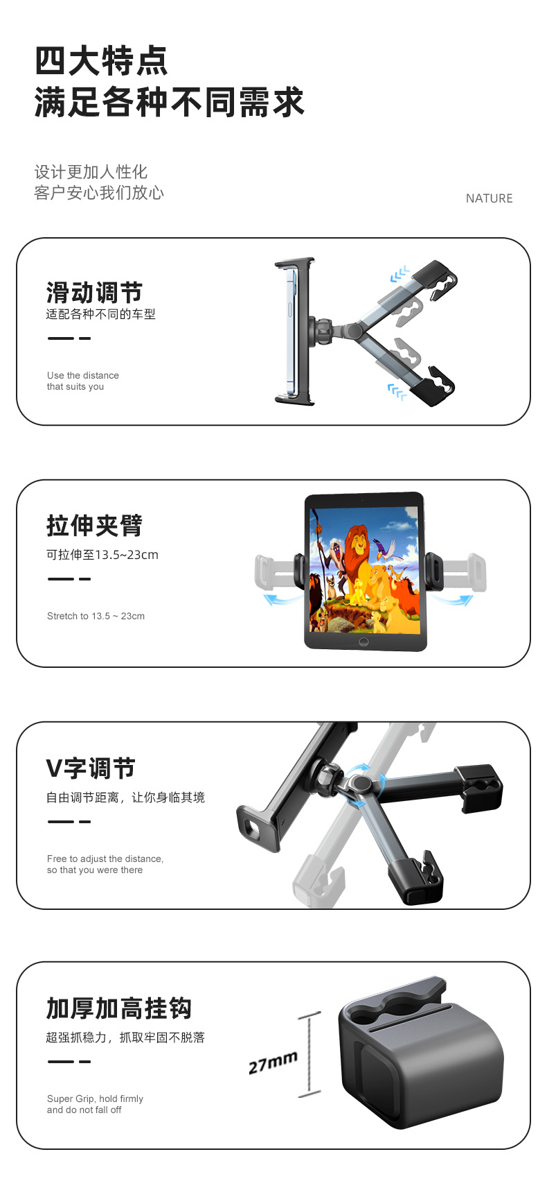 6.适配尺寸:通用手机平板4.7~12.9英寸,最小手机长140mm