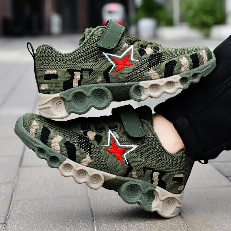 어린이 군사 훈련 신발 소년 여름 캠프 소년 위장 신발 2025 봄과 여름 훈련 큰 어린이 스포츠 신발 소년 신발스토어 가기