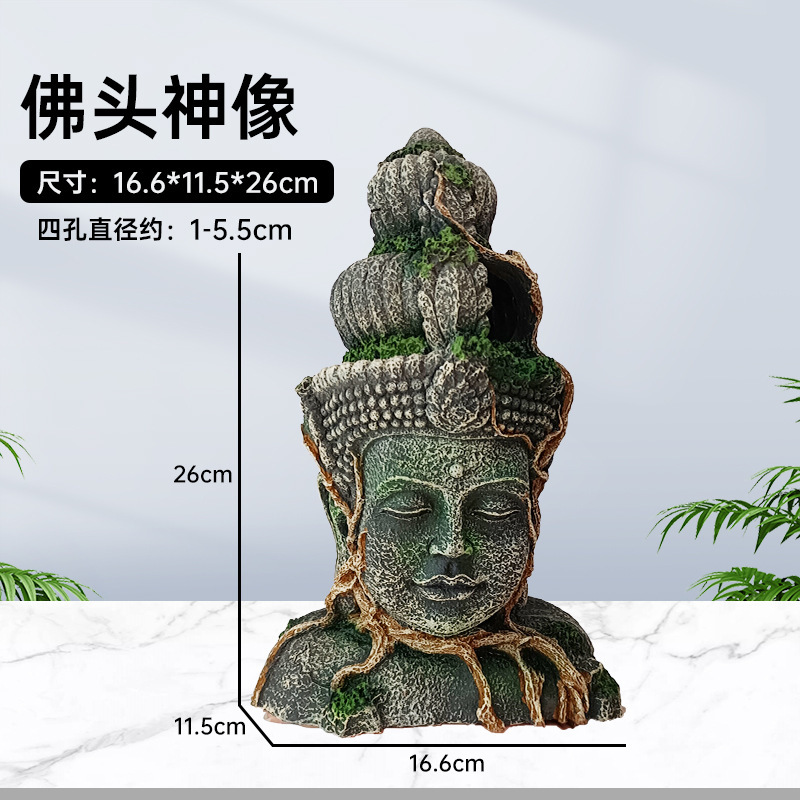 시뮬레이션 어항 풍경 선 고대 부처 부처 머리 장식품 수족관 수지 장식 가짜 돌 부처 앉아 부처