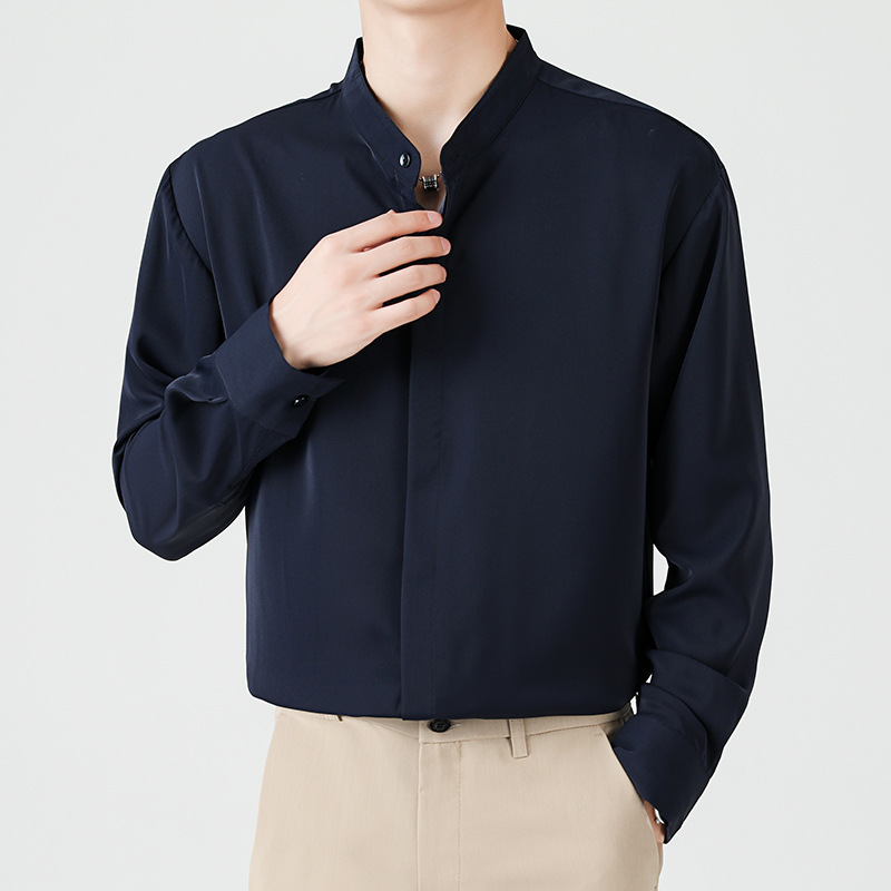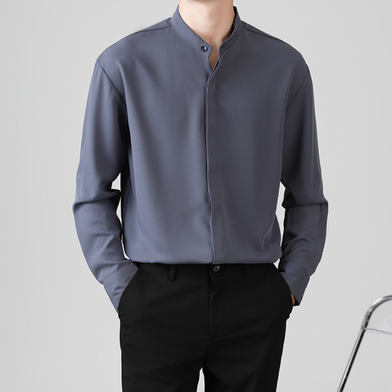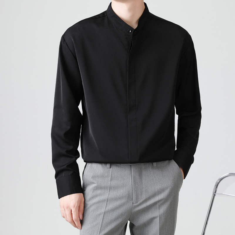 하이 엔드 화이트 셔츠 세로 칼라 남자의 긴팔 가을 비즈니스 전문 툴링 셔츠 세트 내부 베이스 셔츠 라운드 넥스토어 가기