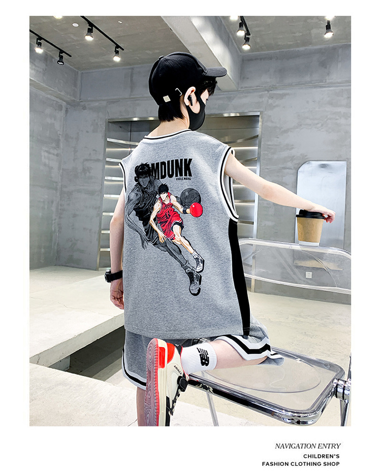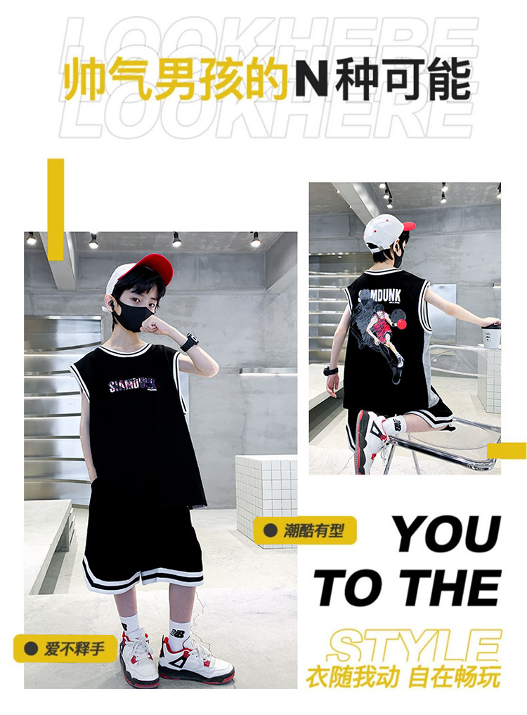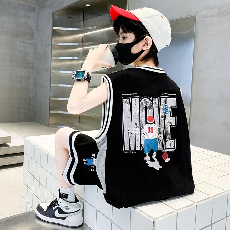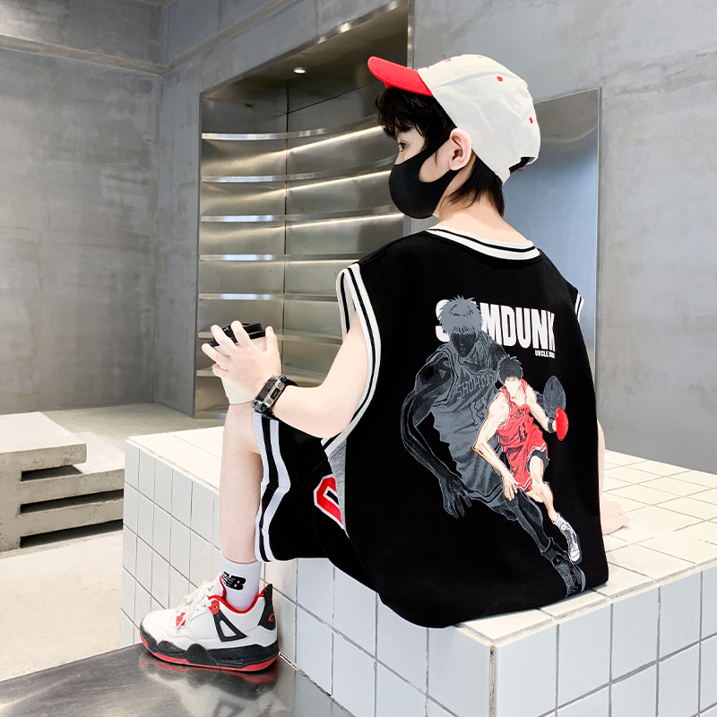 아동복 남아 여름 조끼 세트 2026 신상 중대형 아동 여름 남아 스포츠 농구복 속건성 트렌디